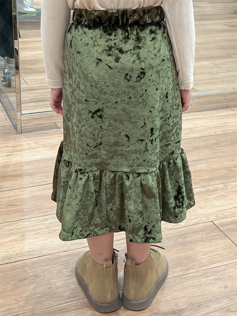 기모 두껍게 ~ 대외 무역 아동복 소녀 따뜻한 서양식 그린 골드 다이아몬드 벨벳 느슨한 허리 연꽃 잎 스윙 스커트