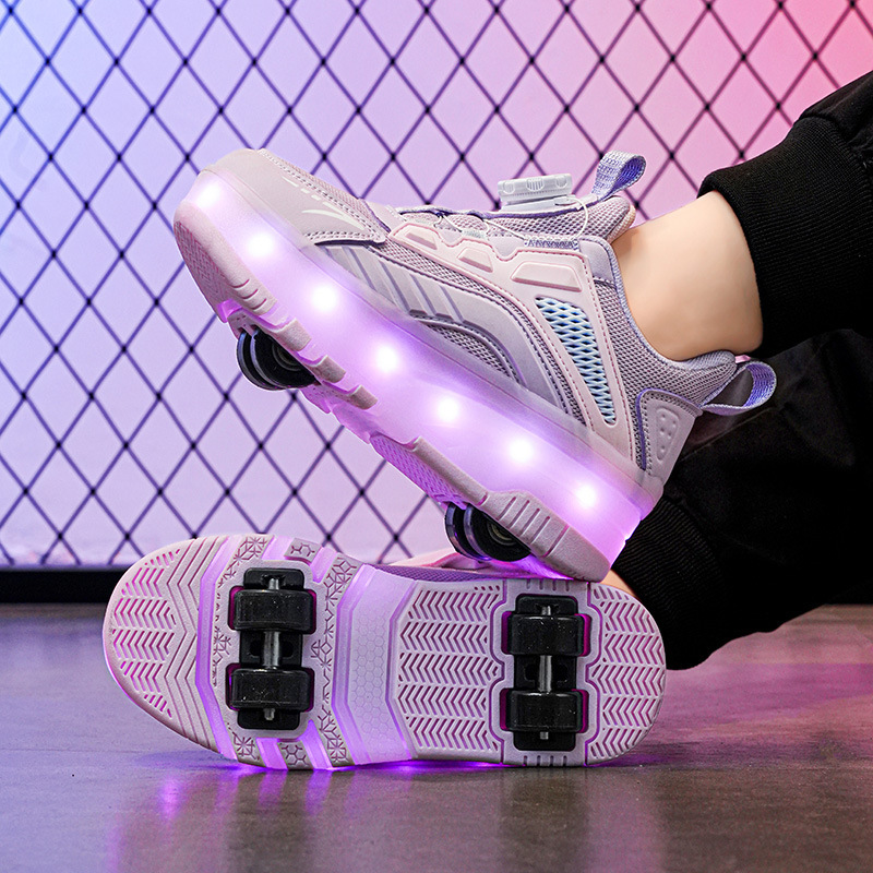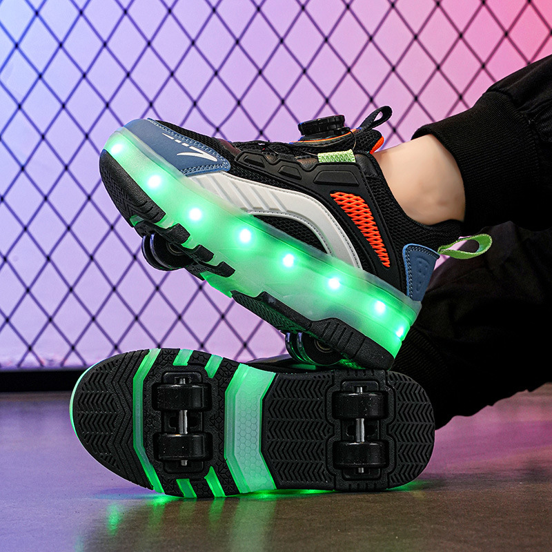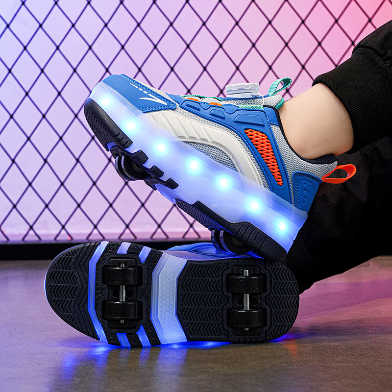 남학생 하이워크 신발 조명으로 어린이 4 륜 충전은 어린 소년을위한 풀리 신발을 수집 할 수 있습니다 하이테크 남성용 큰 어린이 롤러 신발