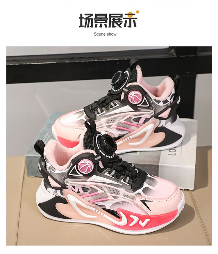 소년 기모 운동화 어린이 회전 버튼 코튼 슈즈 걸스 따뜻한 웨이브 슈즈 중 · 대형 어린이 2 면 러닝화