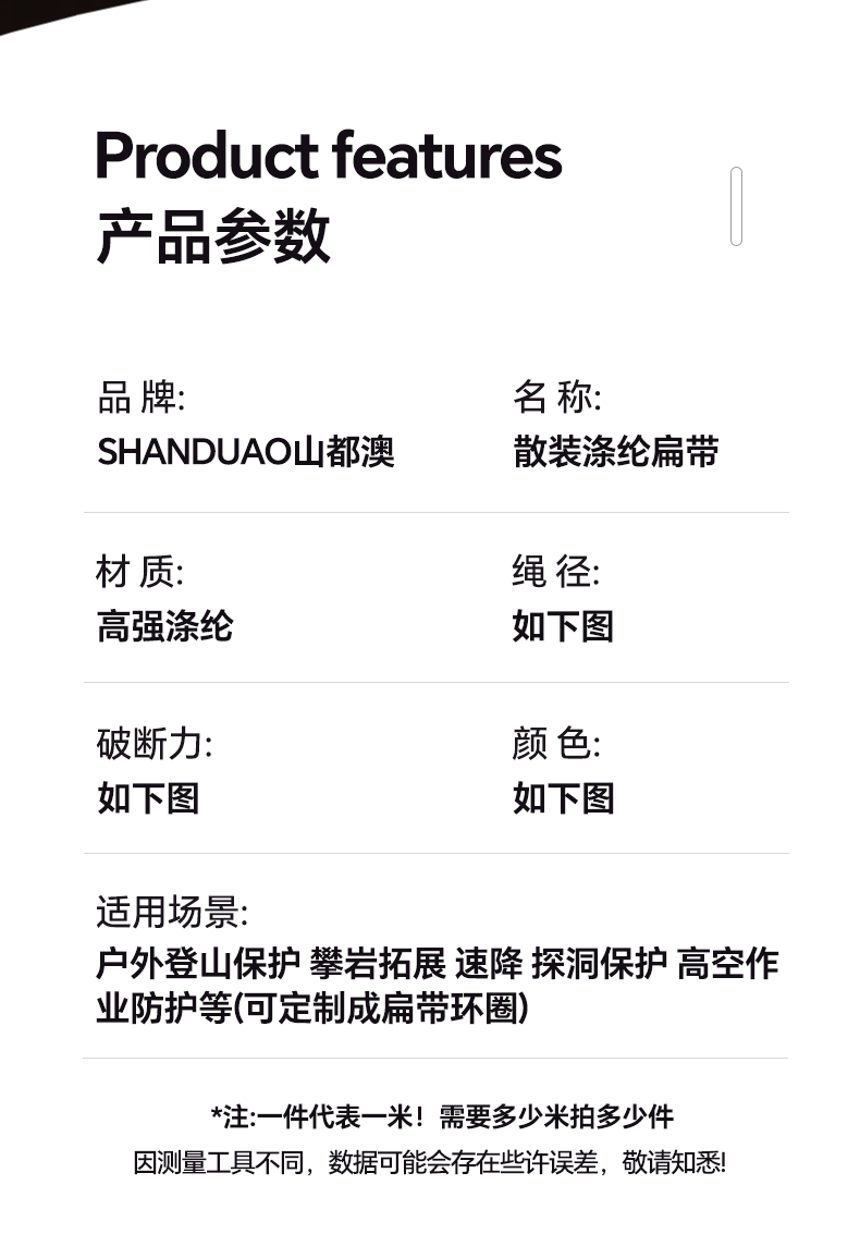 Shandu Ao 항공 작업 안전 로프 GB 가을 플랫 리본 멀티 컬러 SD307
