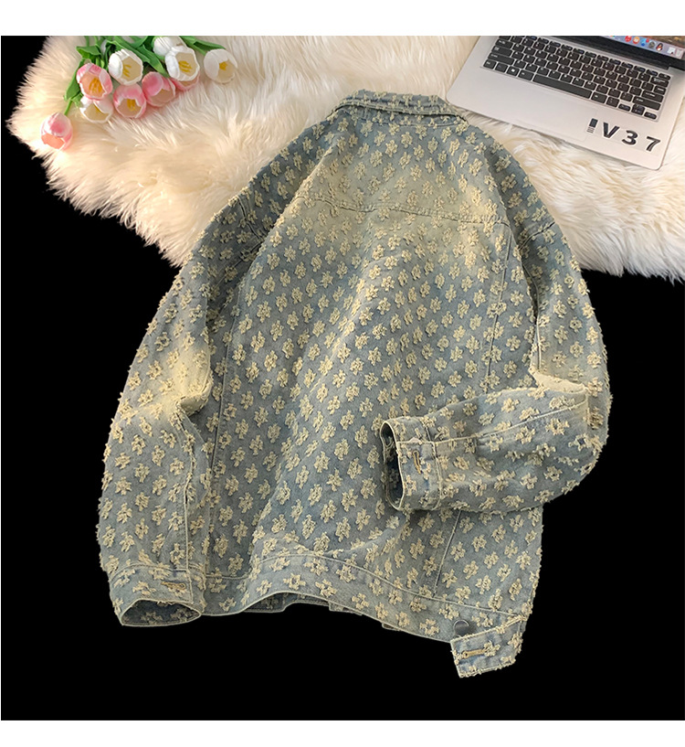 국경 간 남성 패션 브랜드 빈티지 세탁 오래 된 자카드 데님 재킷 느슨한 캐주얼 올 매치 풀 프린트 커플 재킷스토어 가기