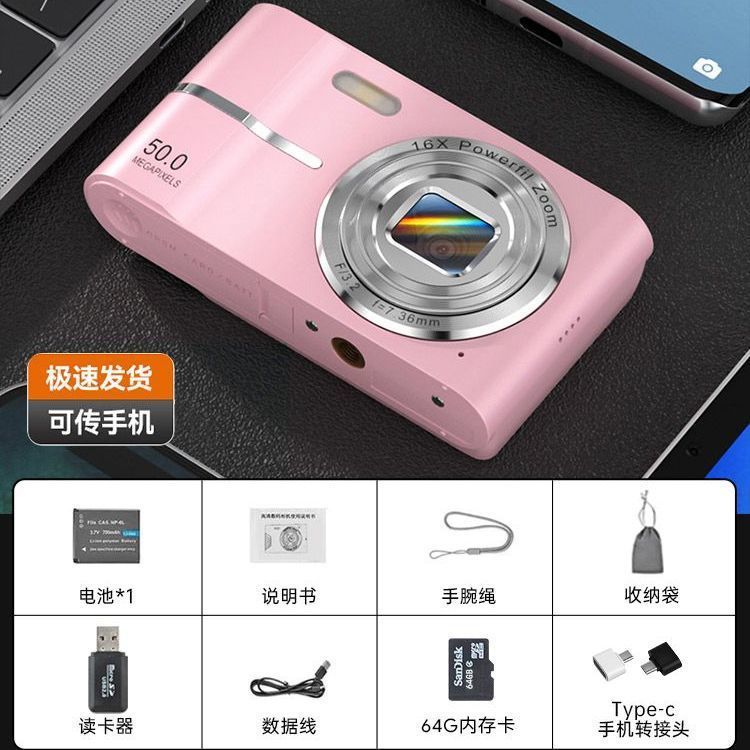 • 5000W 픽셀 [사쿠라 핑크] 16배 초점 + 휴대폰 상호 전송 - 패키지 2: 64G 메모리 카드 + 빠른 배송 + 무료 보관 가방
