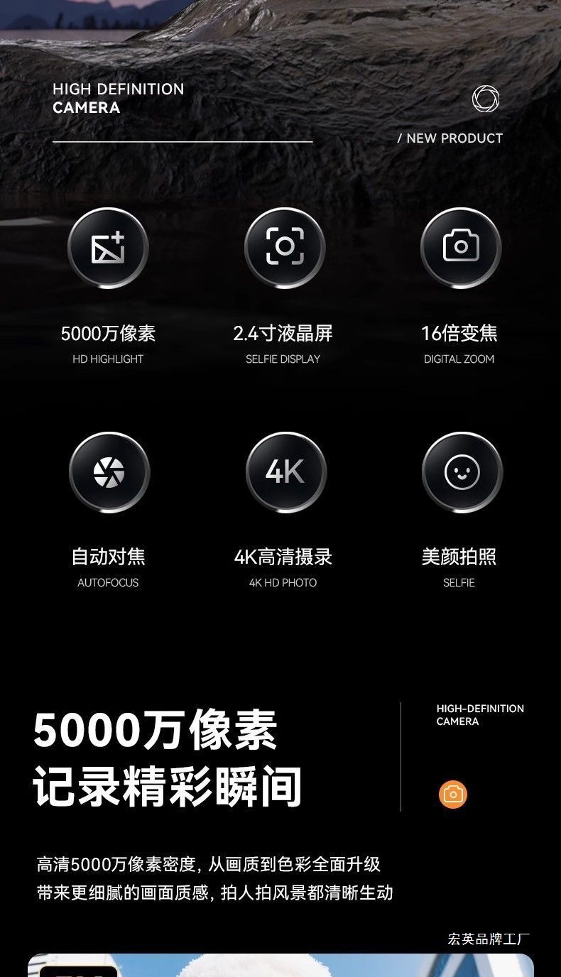 • 5000W 픽셀 [스타리 스카이 블랙] 16배 초점 + 휴대폰 상호 전송 - 공식 표준 구성: 카드 없는 베어 메탈 + 내장 플래시