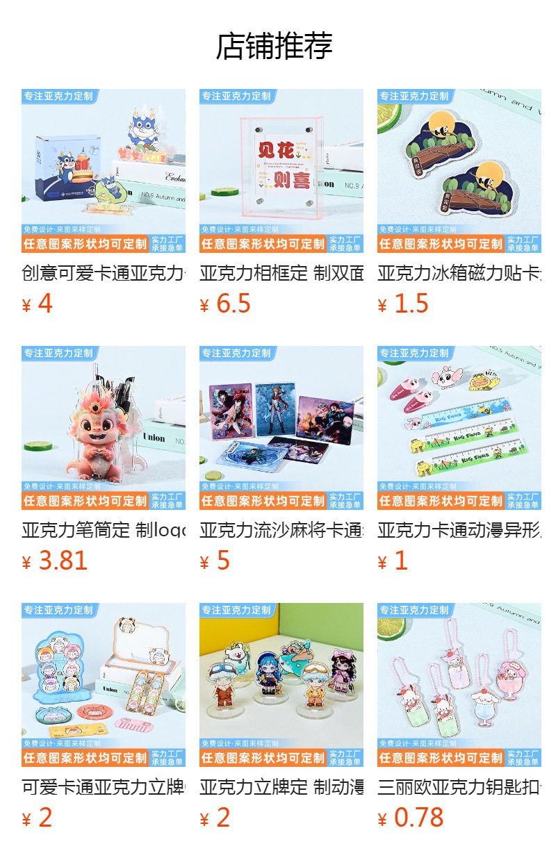 맞춤형 로고가 있는 자석 아크릴 냉장고 자석, 귀여운 만화 애니메이션 주변 상품, 여행 기념품스토어 가기