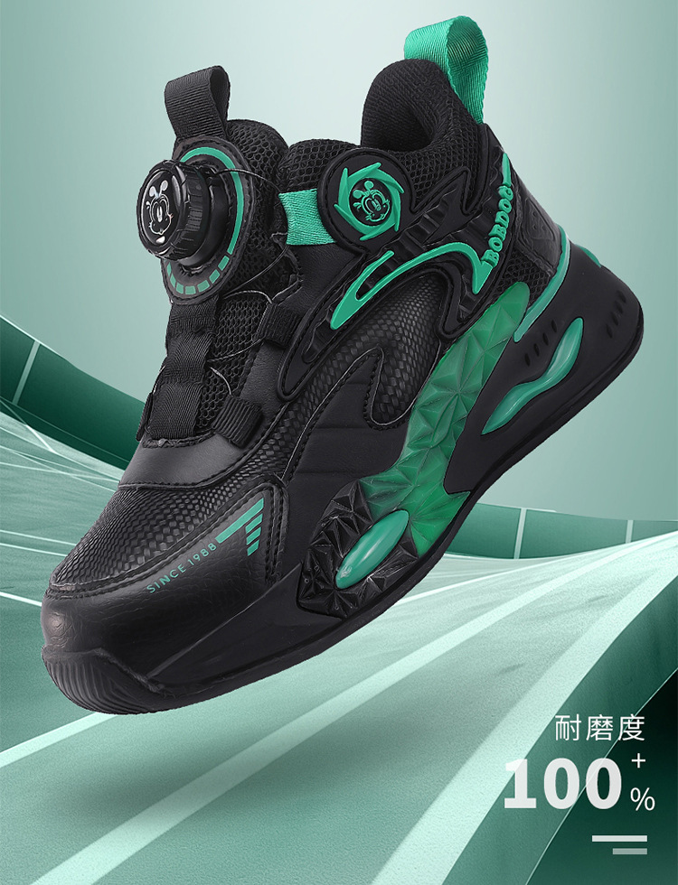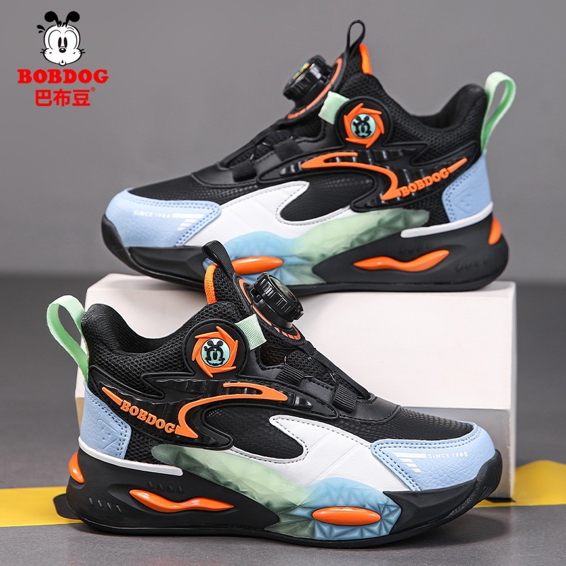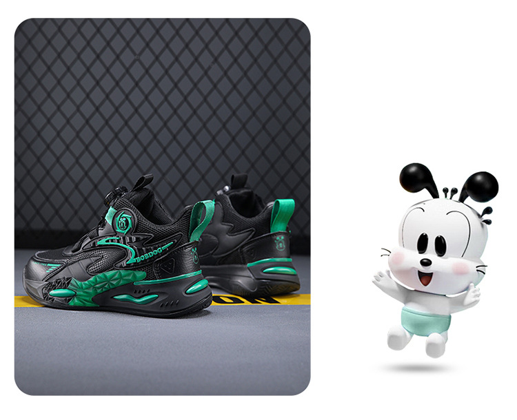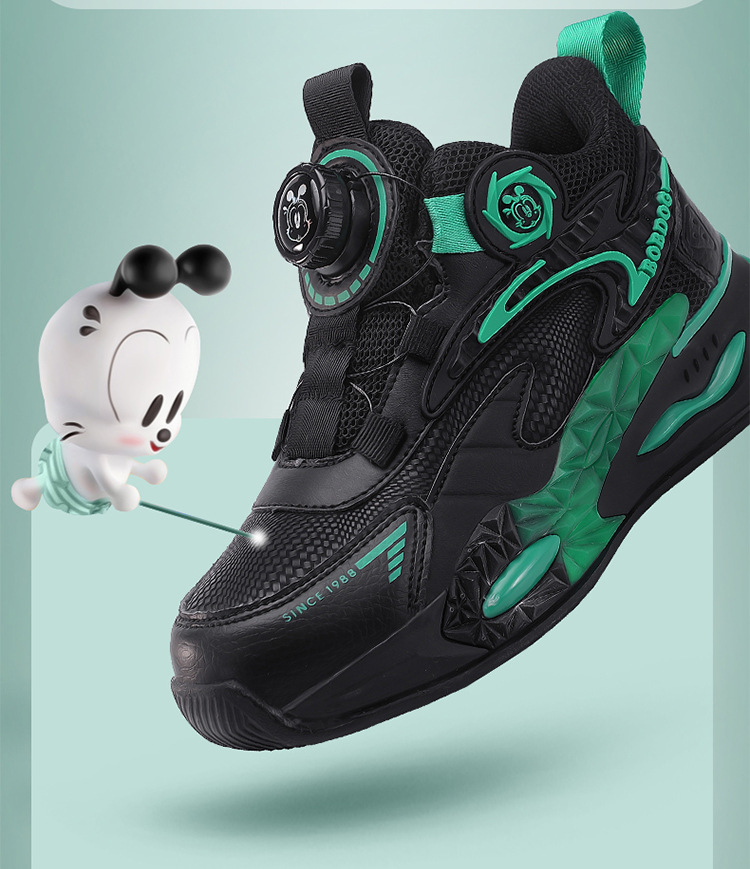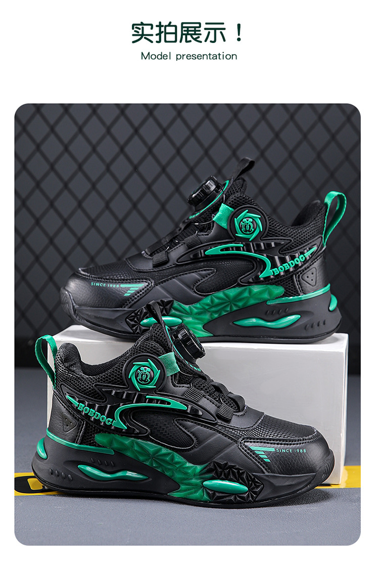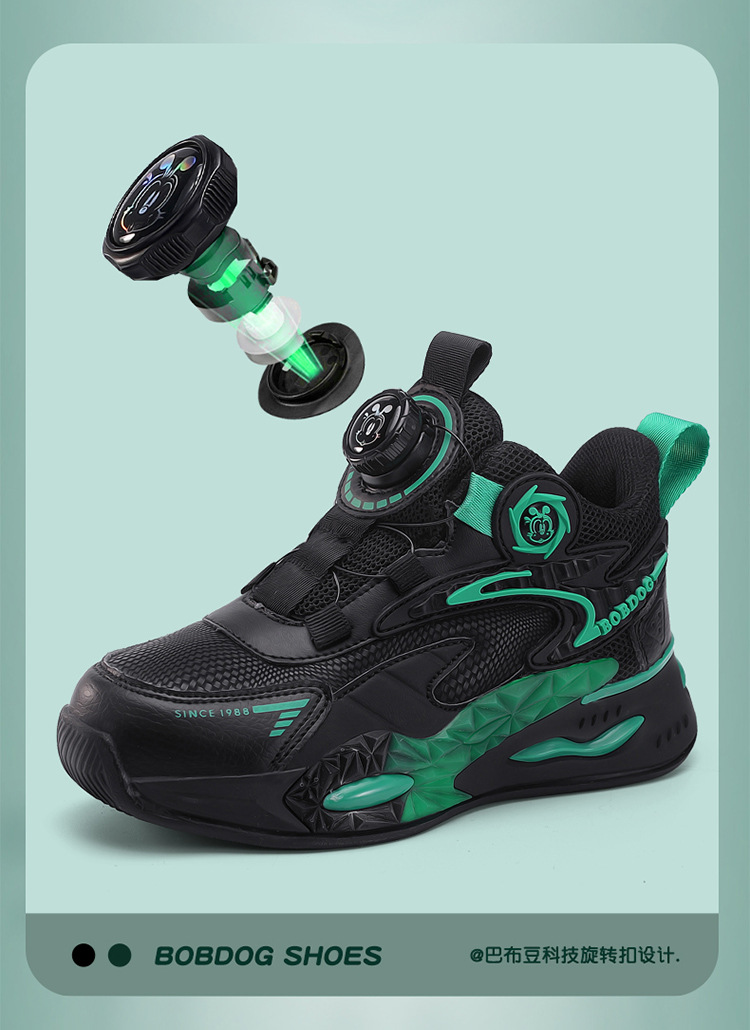 Babudou 운동화 소년 가죽 방수 웨이브 신발 대형 어린이 메쉬 통기성 회전 버튼 소년 농구 신발