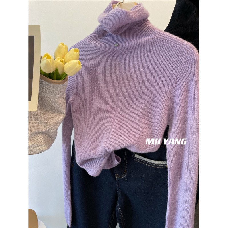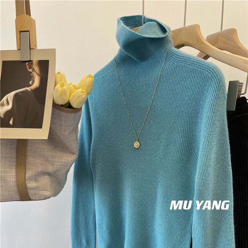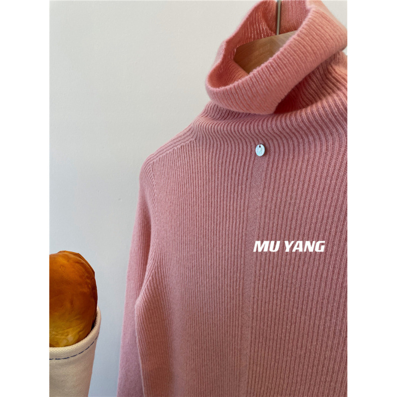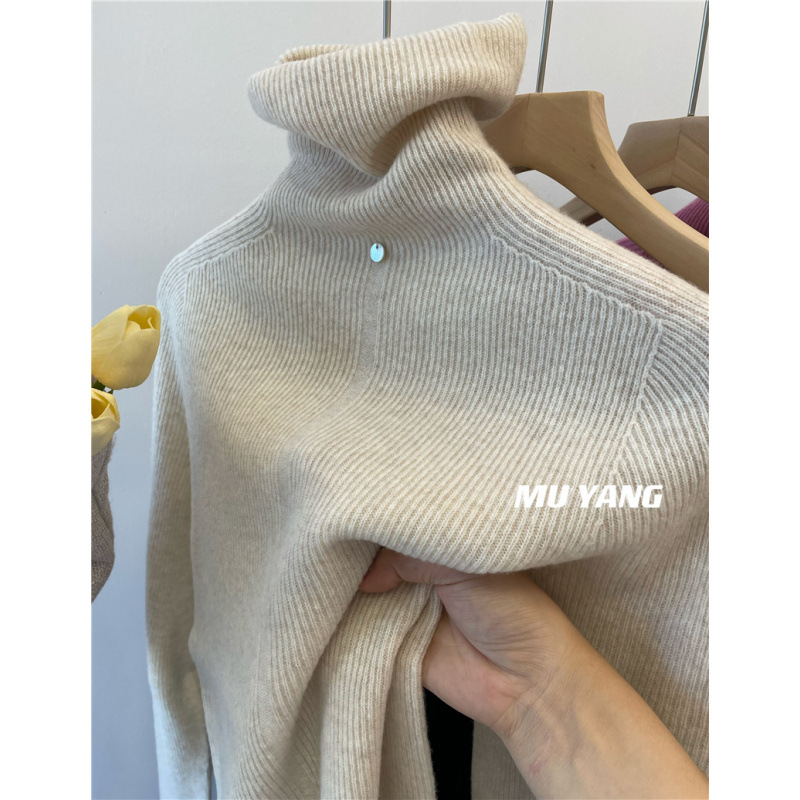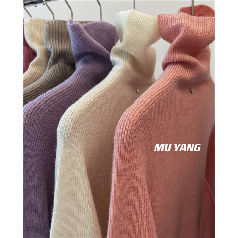 앞면과 뒷면은 두꺼운 모조 양모 슬리밍 높은 목 더미 칼라 니트 스웨터베이스 스웨터 여성용 2024 년 가을과 겨울 뉴스토어 가기