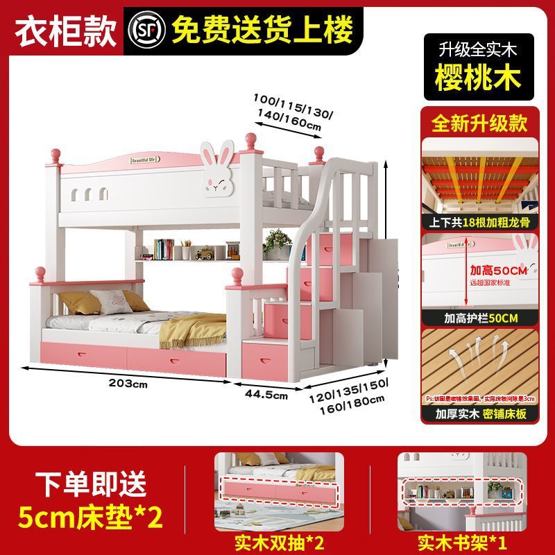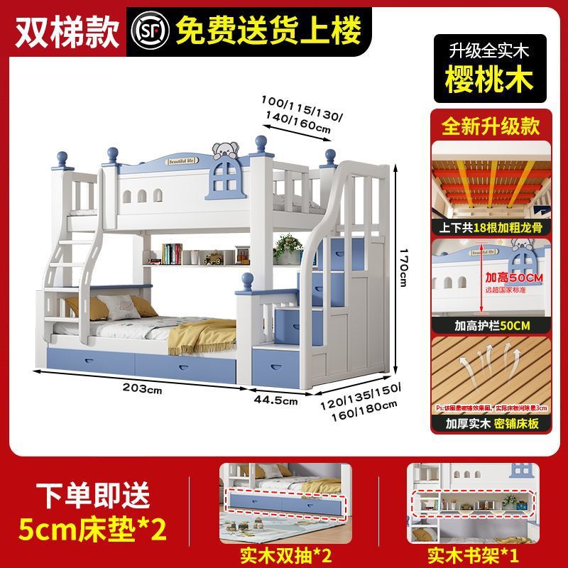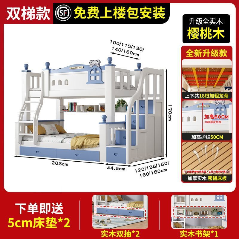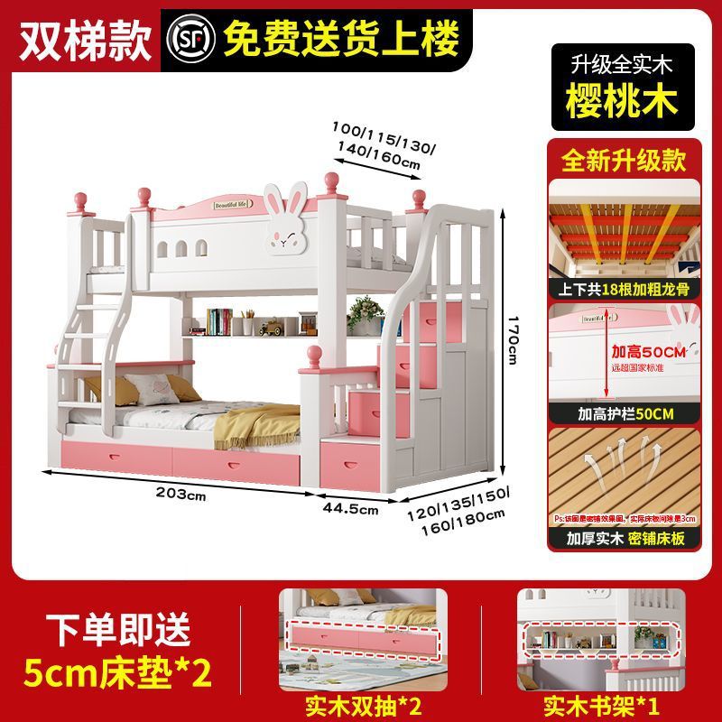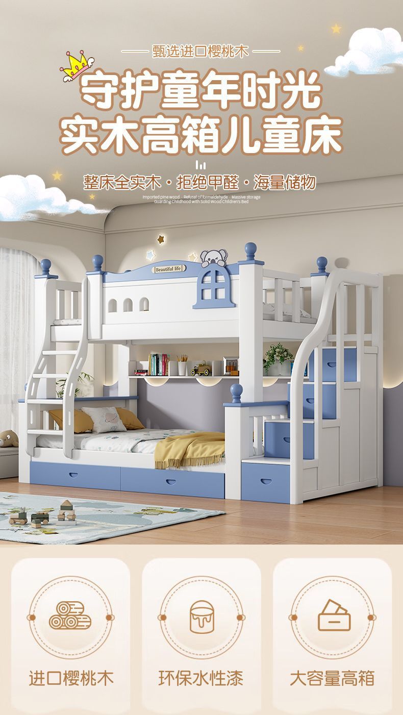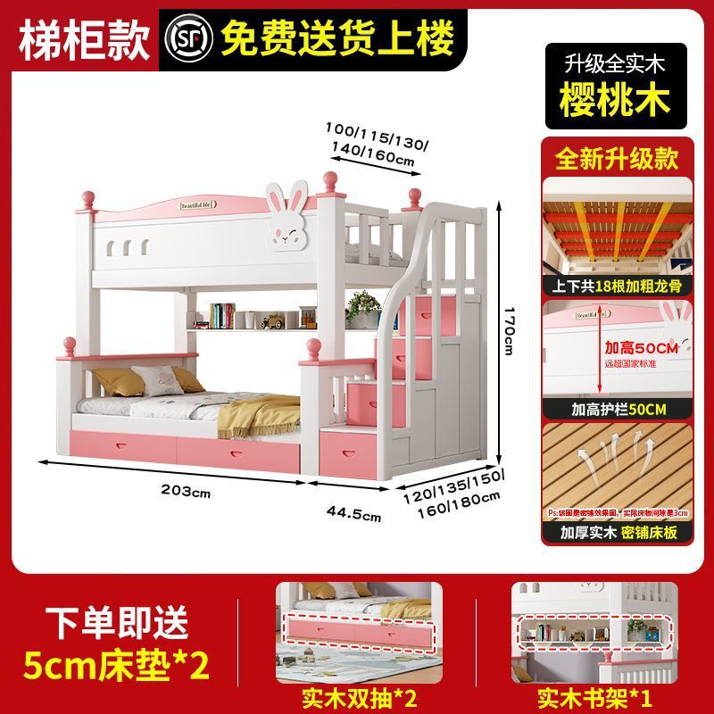 체리 원목 이층 침대 어린이용 이층 침대 하이앤로우 침대 소형 가정용 이층 어린이 침대