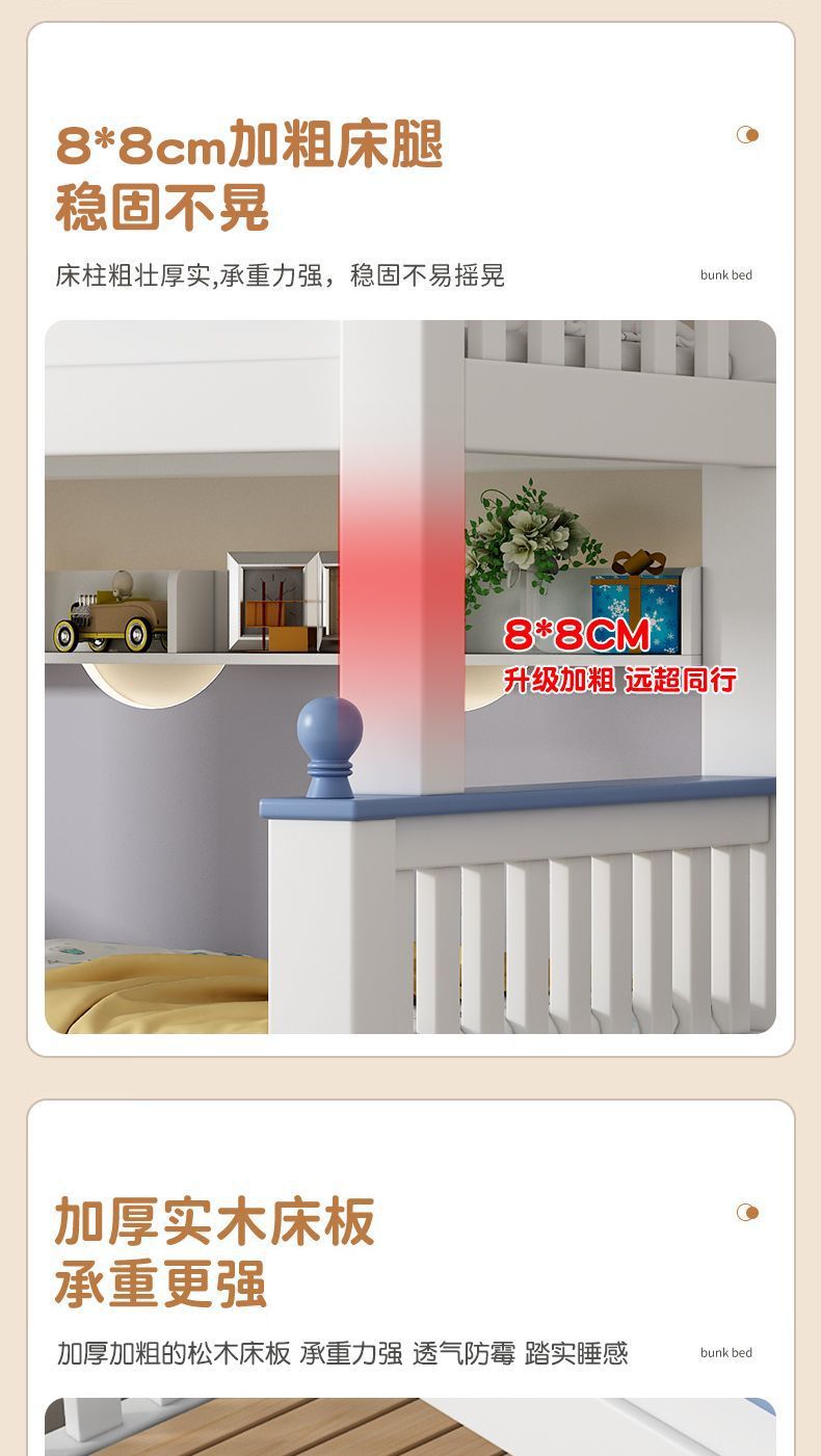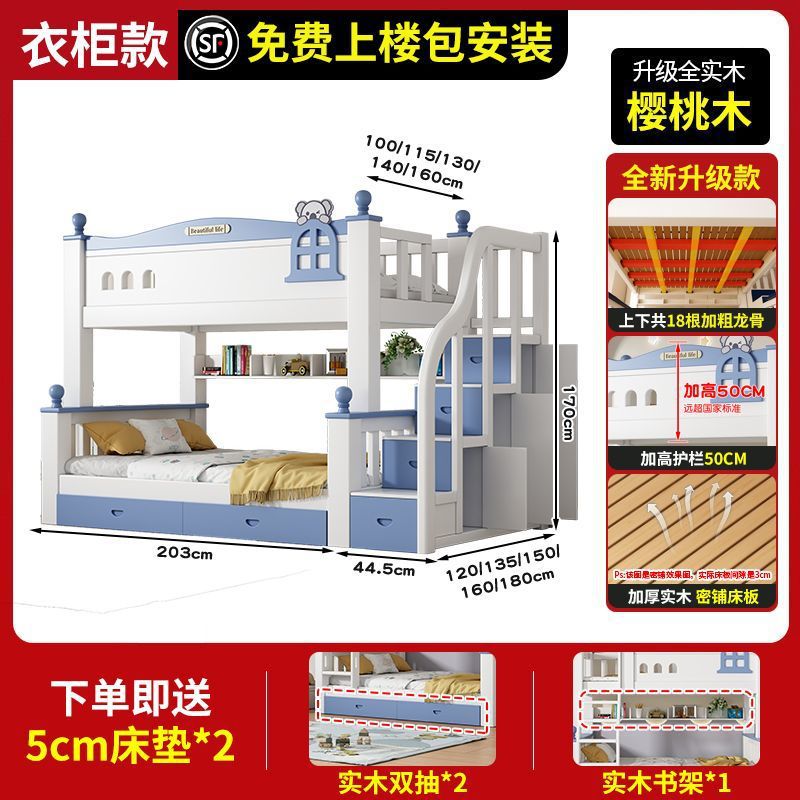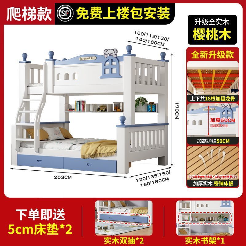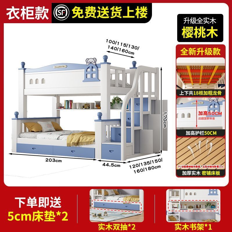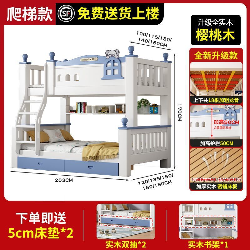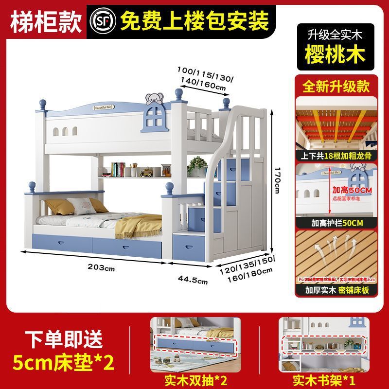 체리 원목 이층 침대 어린이용 이층 침대 하이앤로우 침대 소형 가정용 이층 어린이 침대