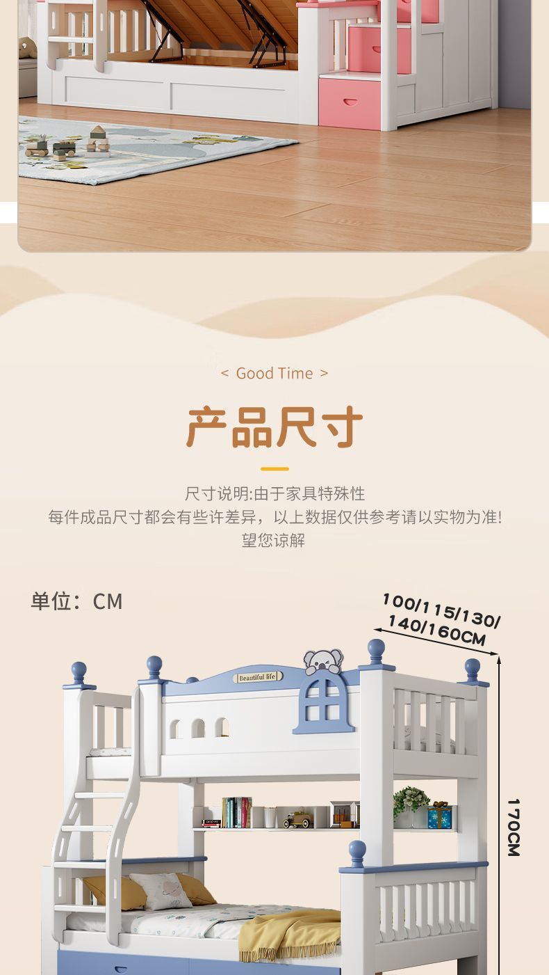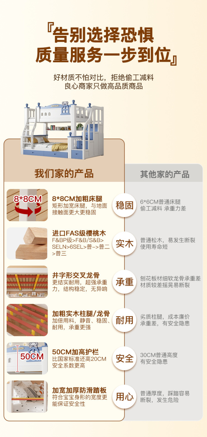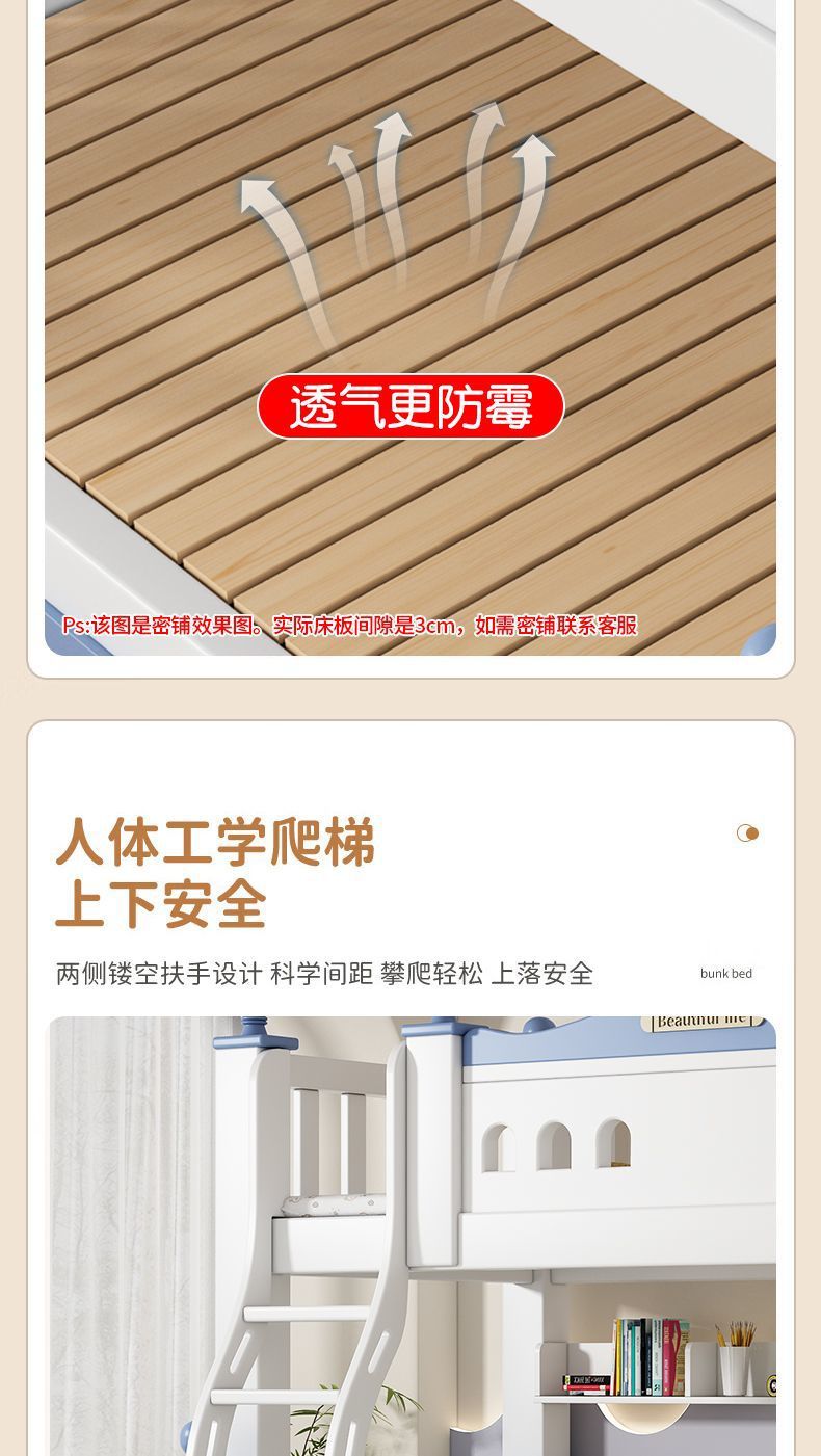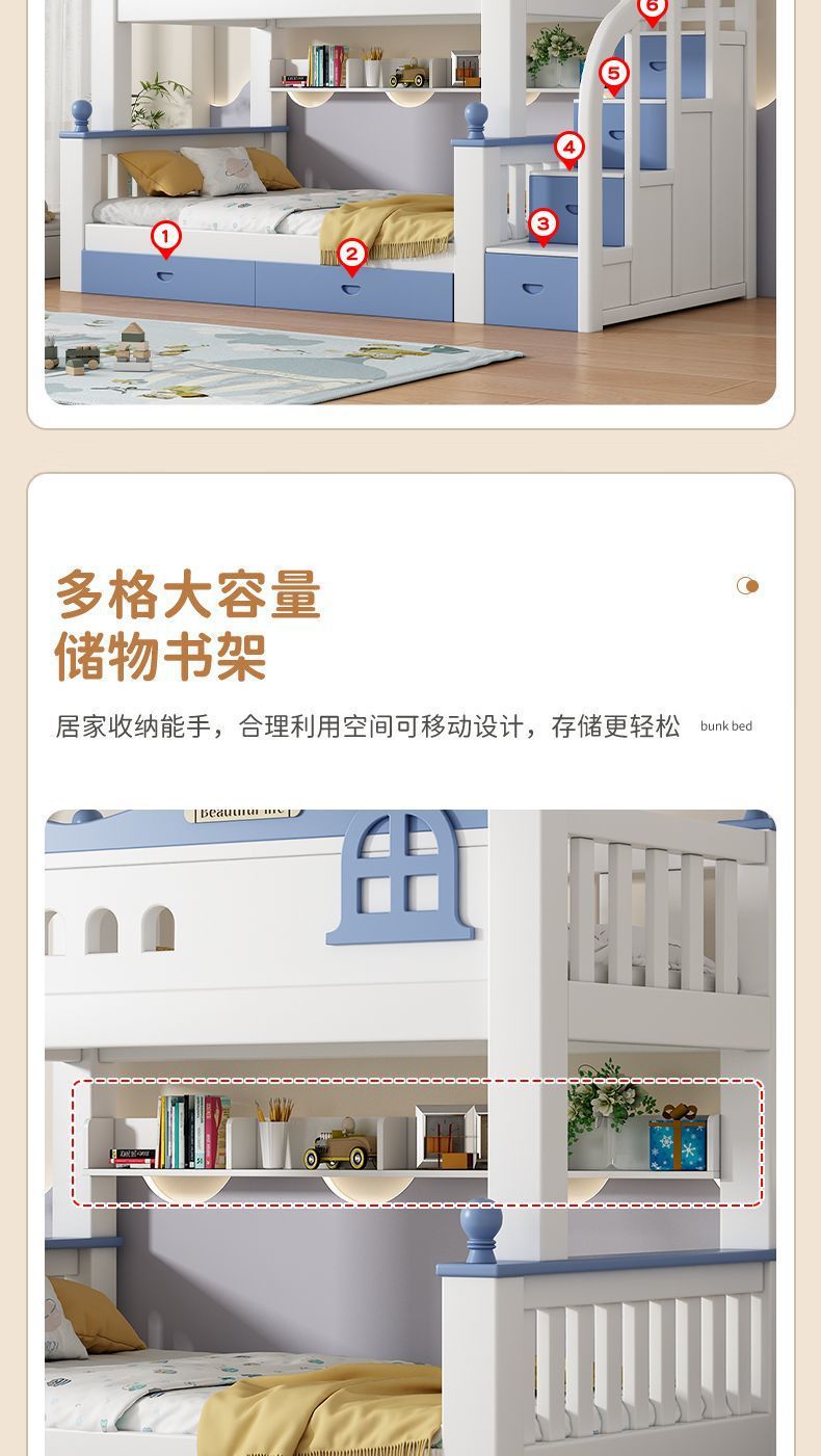 체리 원목 이층 침대 어린이용 이층 침대 하이앤로우 침대 소형 가정용 이층 어린이 침대