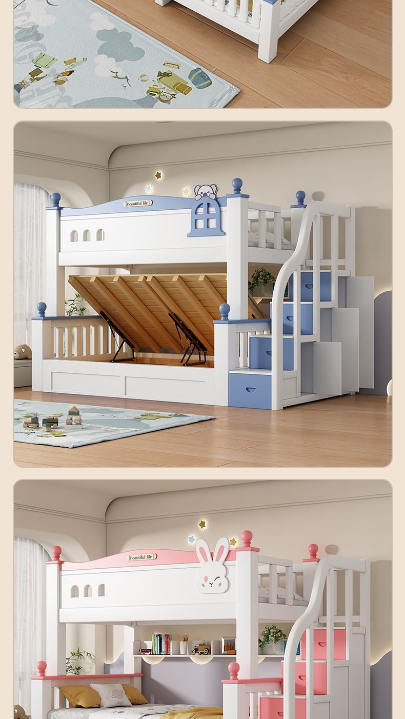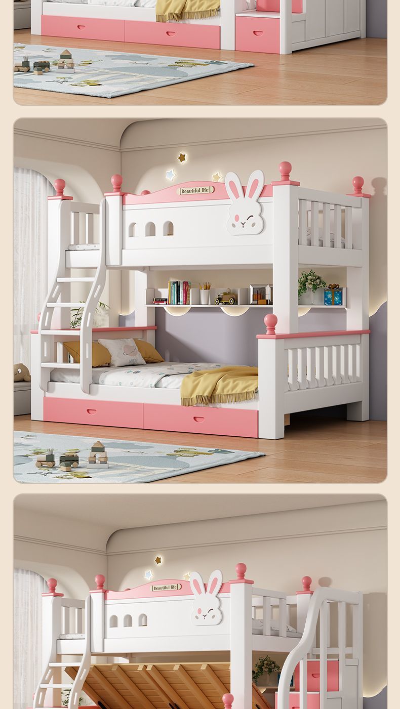 • 분홍색과 흰색 긴귀 토끼 분할 + 사다리 캐비닛 + 책장 + 서랍 + 매트리스 + 설치
