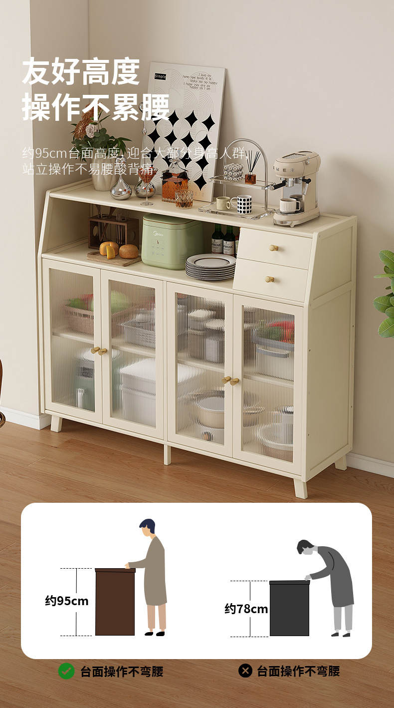 크림 스타일 사이드 캐비닛 가정용 주방 캐비닛 비 솔리드 우드 통합 벽 차 캐비닛 2024 새로운 스타일 거실 사이드 캐비닛