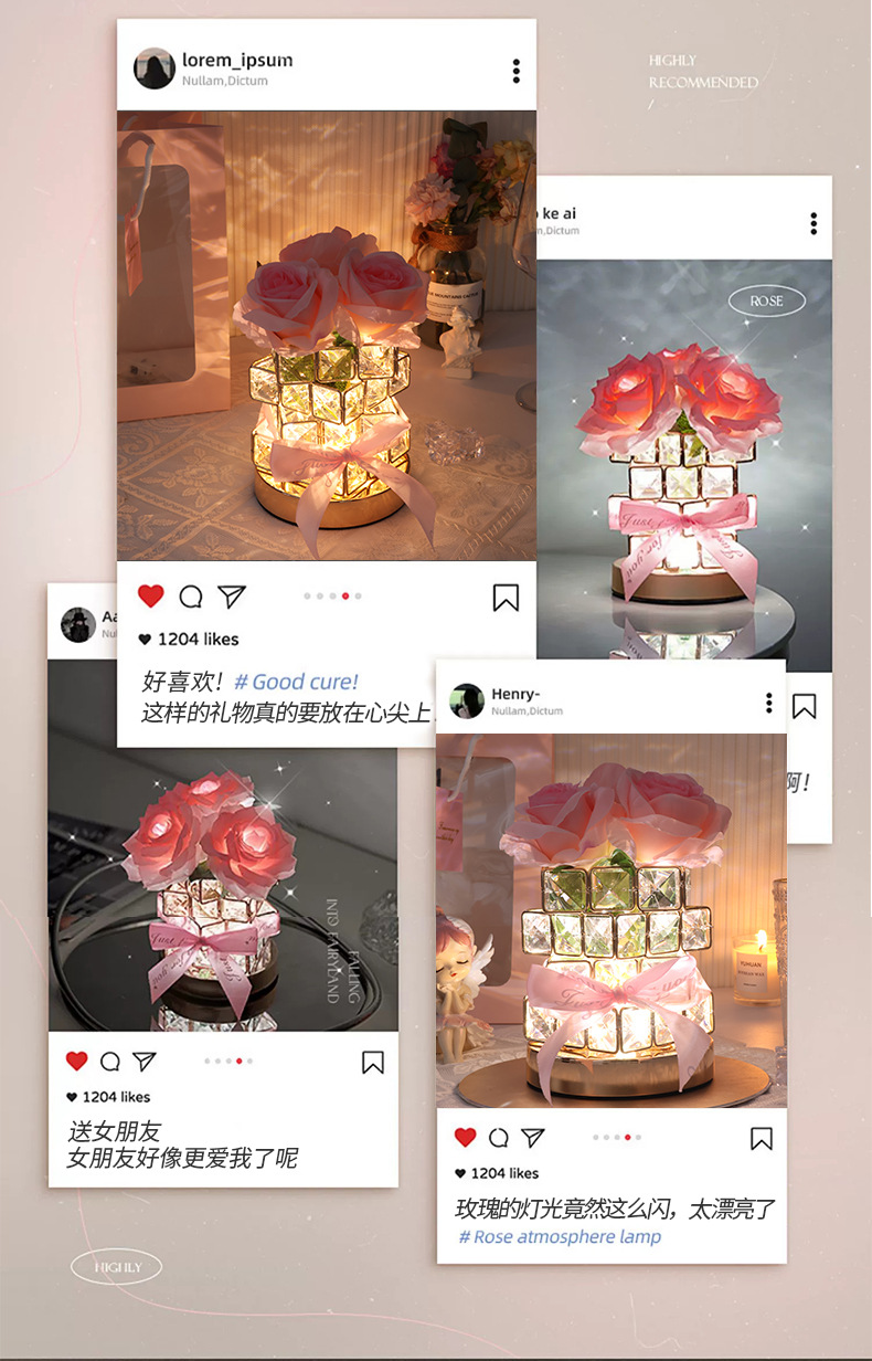520 선물 로즈 루빅의 큐브 분위기 테이블 램프 여아 최고의 친구 생일 어머니의 날 장식품을위한 야간 조명스토어 가기