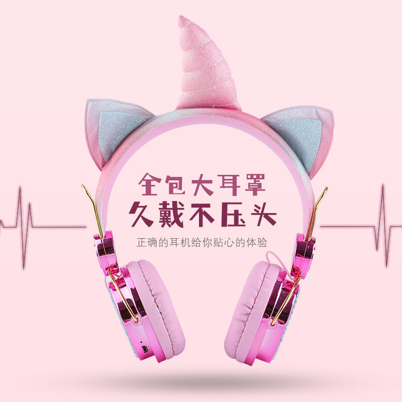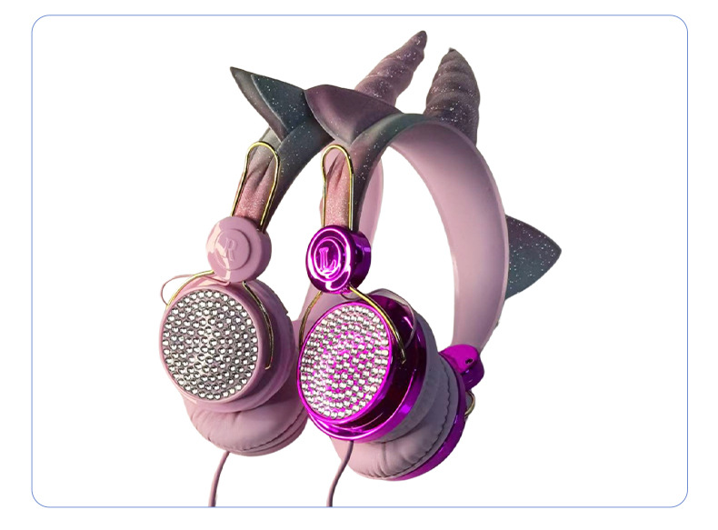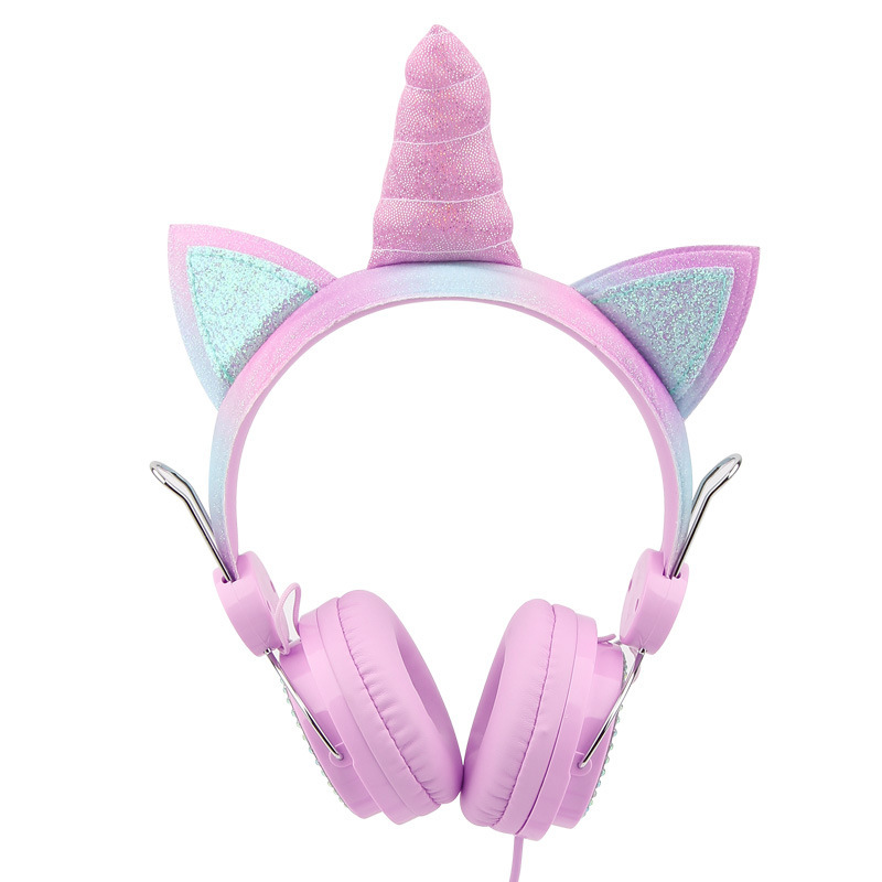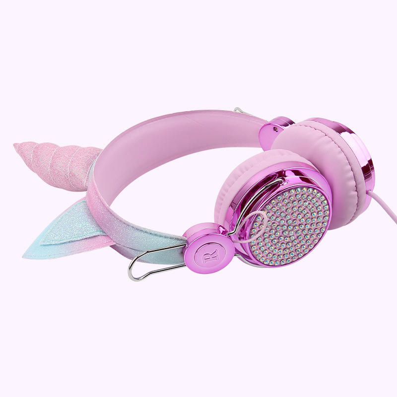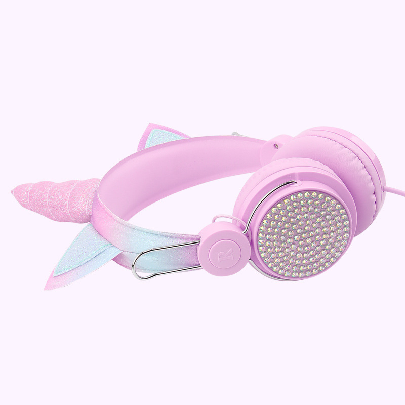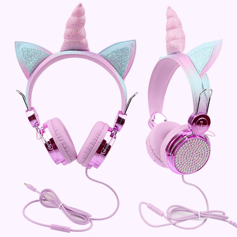 귀여운 유니콘 어린이 유선 헤드폰 헤드셋 고양이 귀 다이아몬드 헤드폰 학생 인터넷 클래스 밀 헤드폰