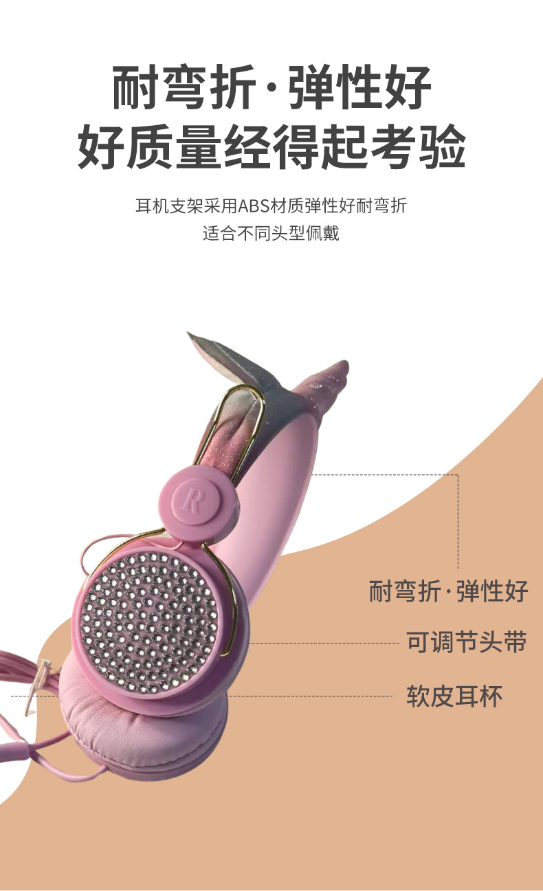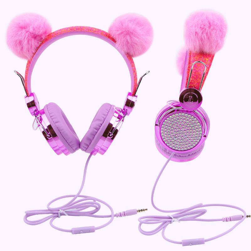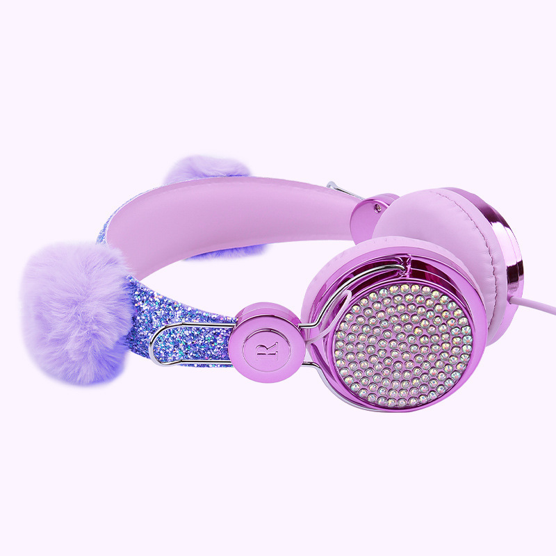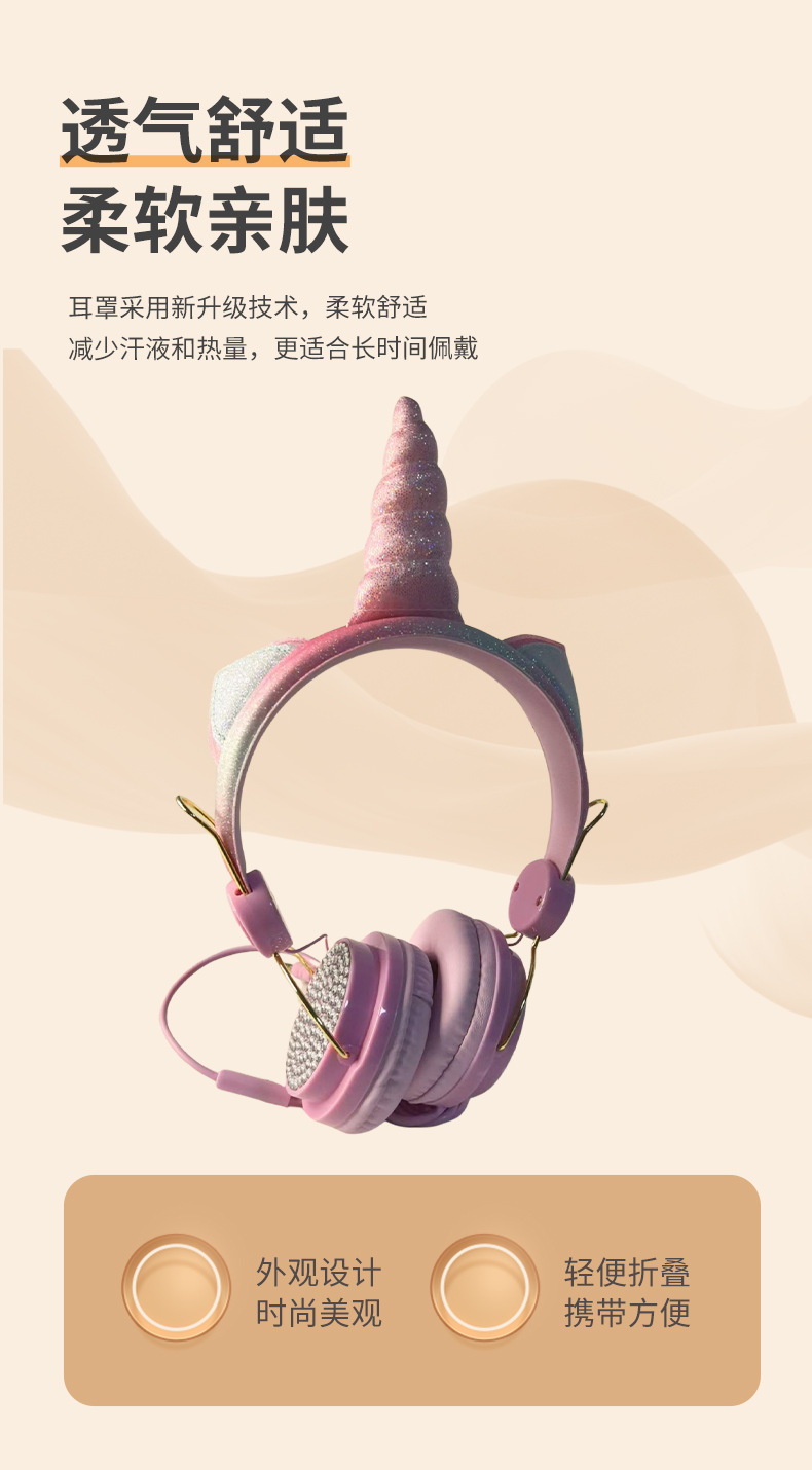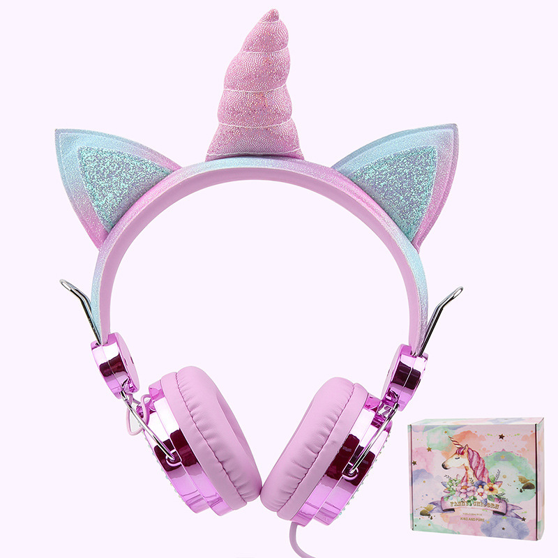 귀여운 유니콘 어린이 유선 헤드폰 헤드셋 고양이 귀 다이아몬드 헤드폰 학생 인터넷 클래스 밀 헤드폰