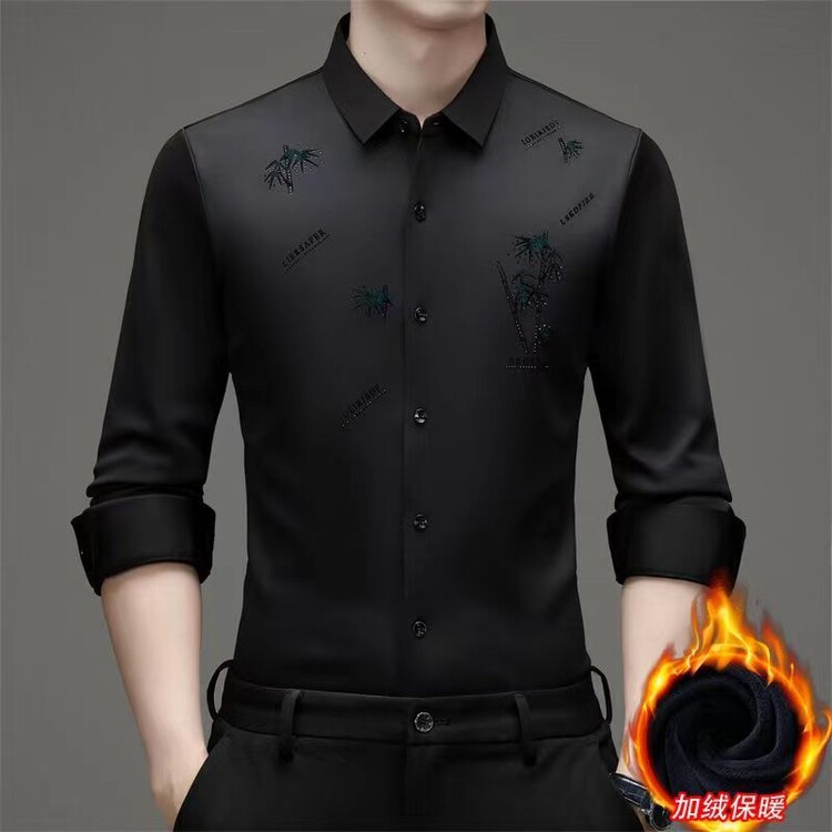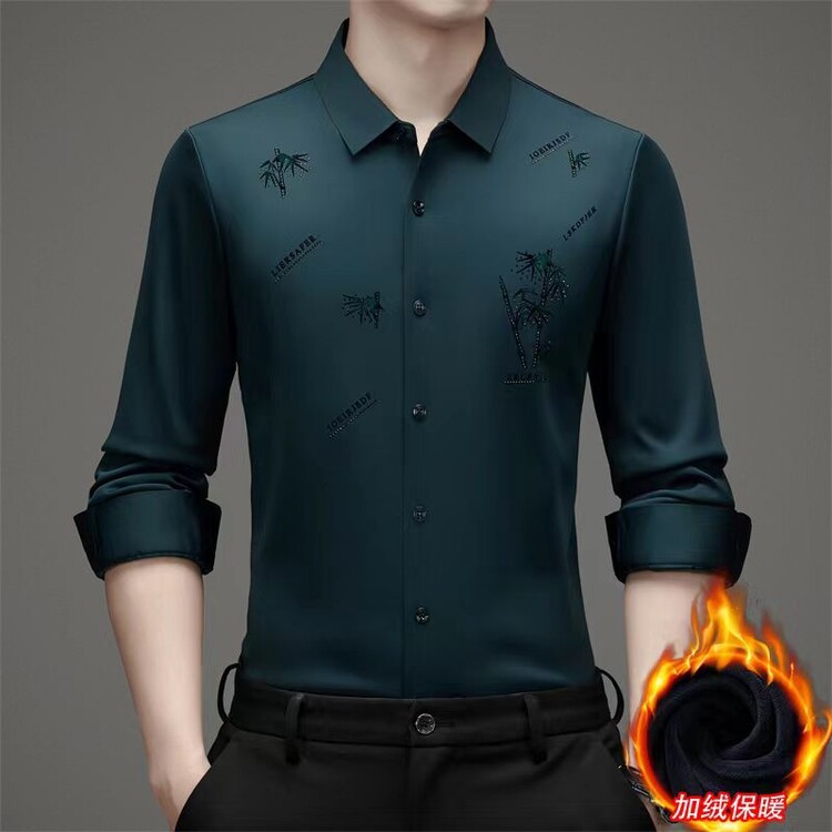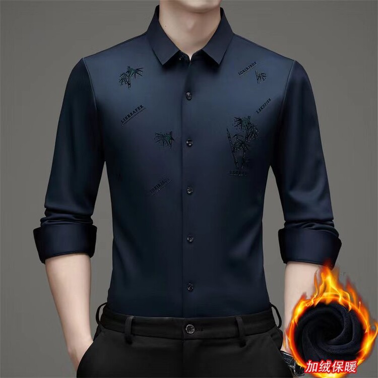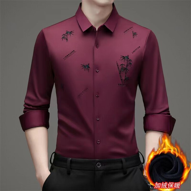 기모 두꺼운 긴 소매 따뜻한 셔츠 캐주얼 스트레치 중년 셔츠 남자의 인쇄베이스 셔츠 탑스토어 가기