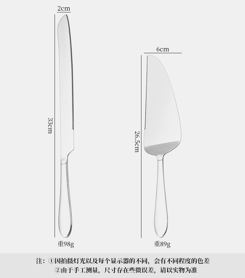 국경 간 뜨거운 판매 스테인레스 스틸 케이크 나이프와 삽 2 조각 세트 웨딩 가정용 긴 케이크 나이프 피자 나이프와 삽 빵 칼