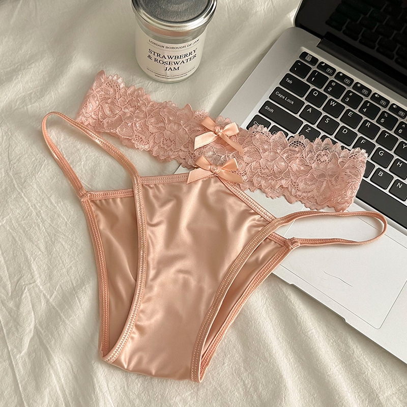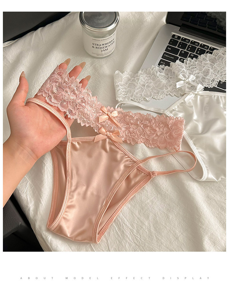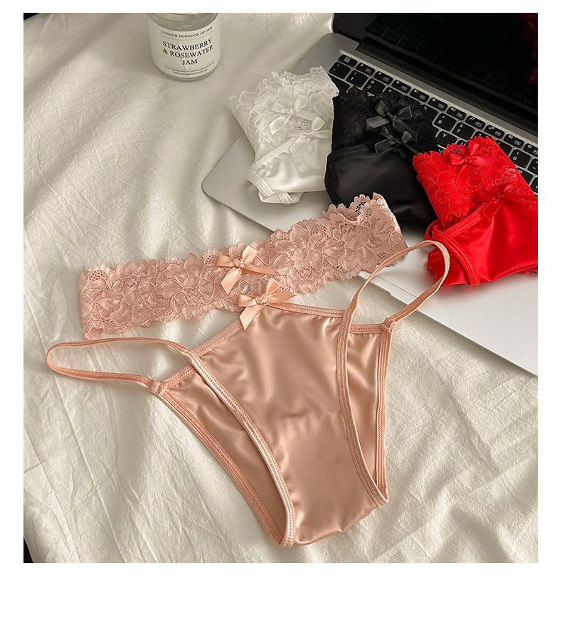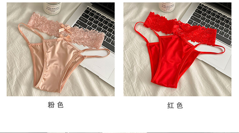 새해의 큰 빨간 프랑스 새틴 섹시한 속옷 여성의 순수한 욕망 할로우 레이스 코튼 크로치 낮은 허리 여성 브리프스토어 가기
