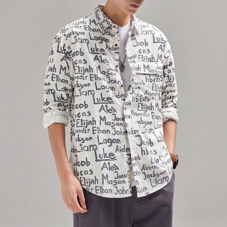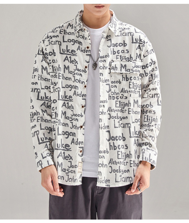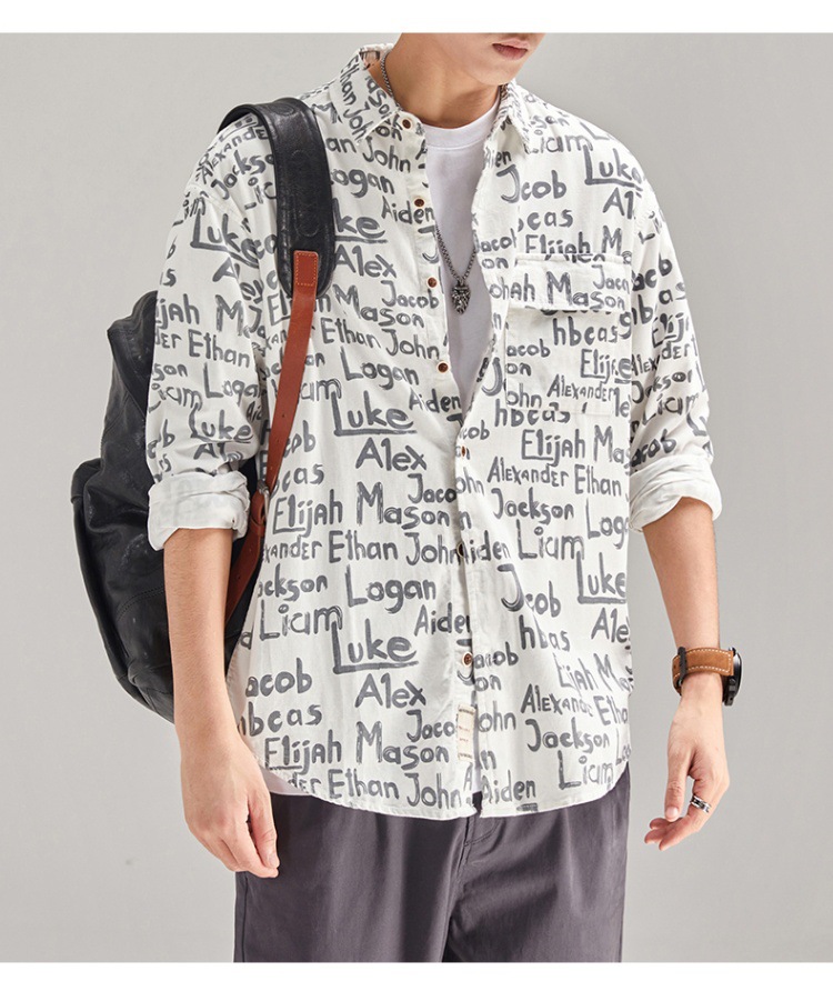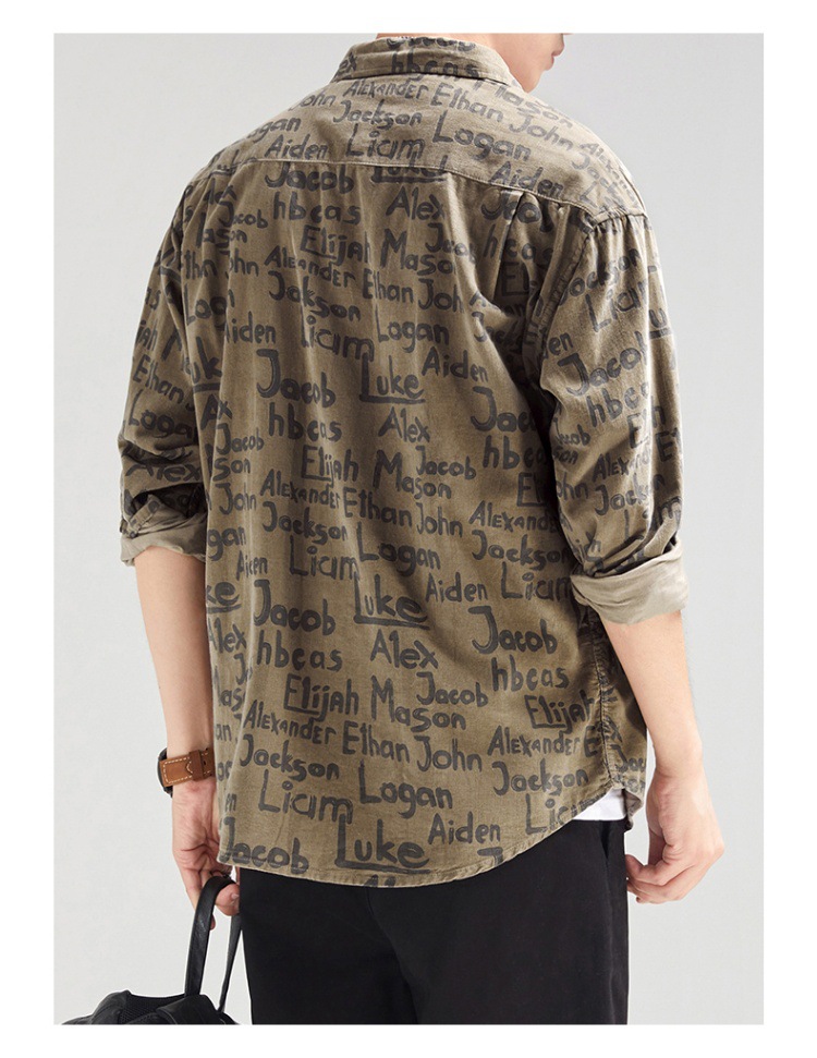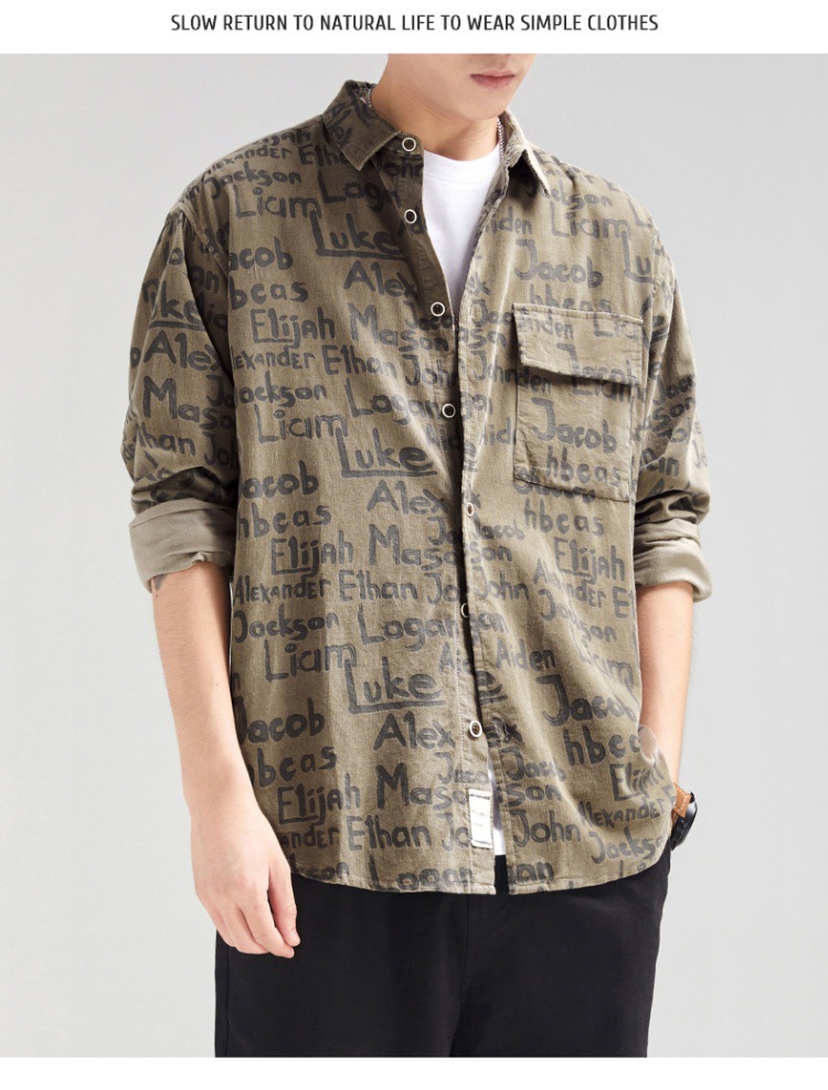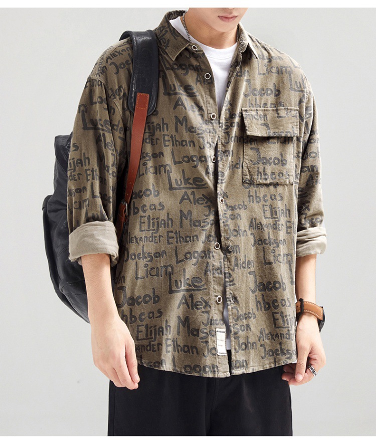 빈티지 무거운 캐주얼 긴팔 셔츠 남성 재킷 봄과 가을 일본 스타일 느슨한 올 매치 작업 셔츠 Instagram 스타일 트렌디스토어 가기
