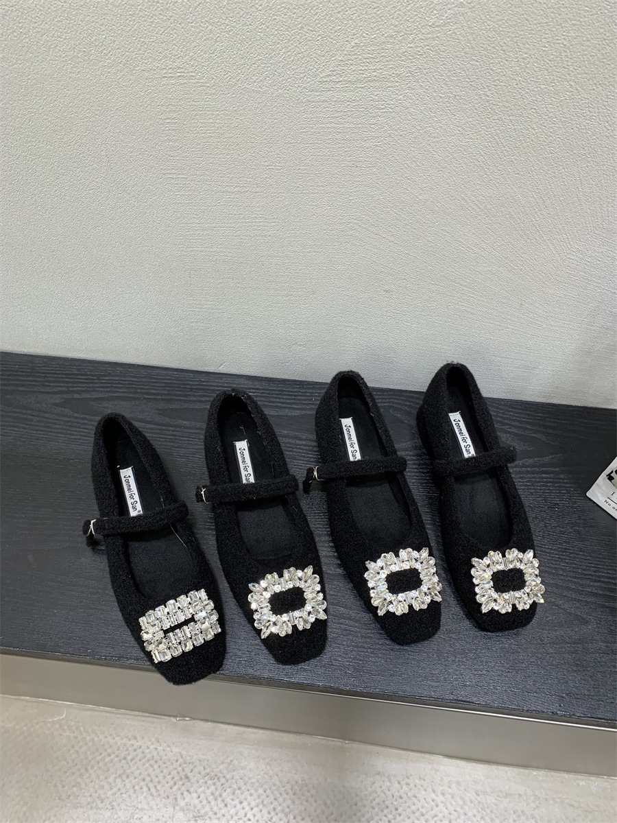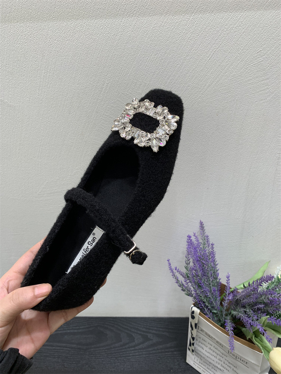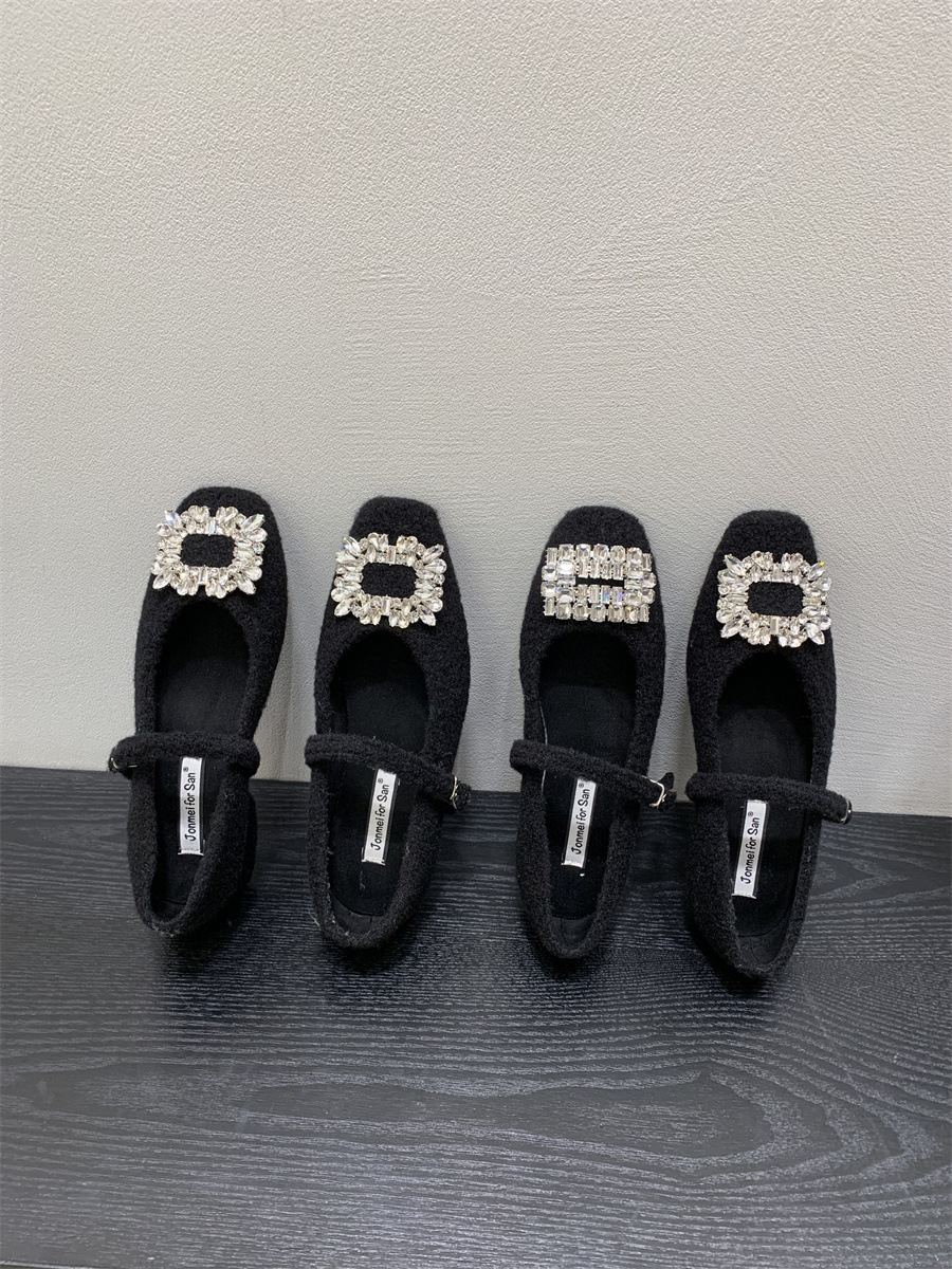 Xiaoxiang 스타일의 검은 색 모조 다이아몬드 기모 사각 머리 Mary Jane 신발 가을 및 겨울 따뜻한 푹신한 신발을위한 여성용 두꺼운 뒤꿈치 플러시 면화 신발스토어 가기