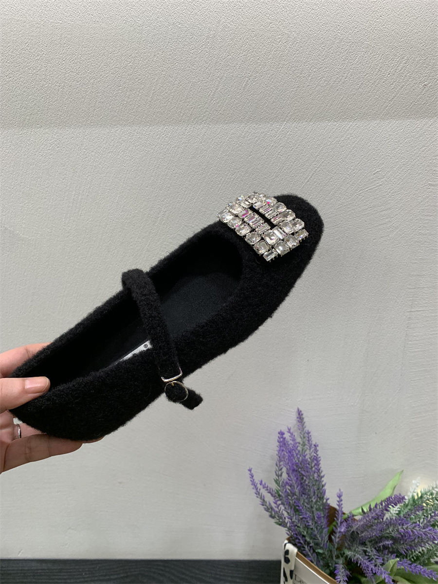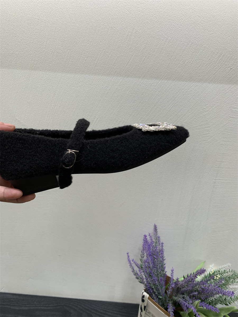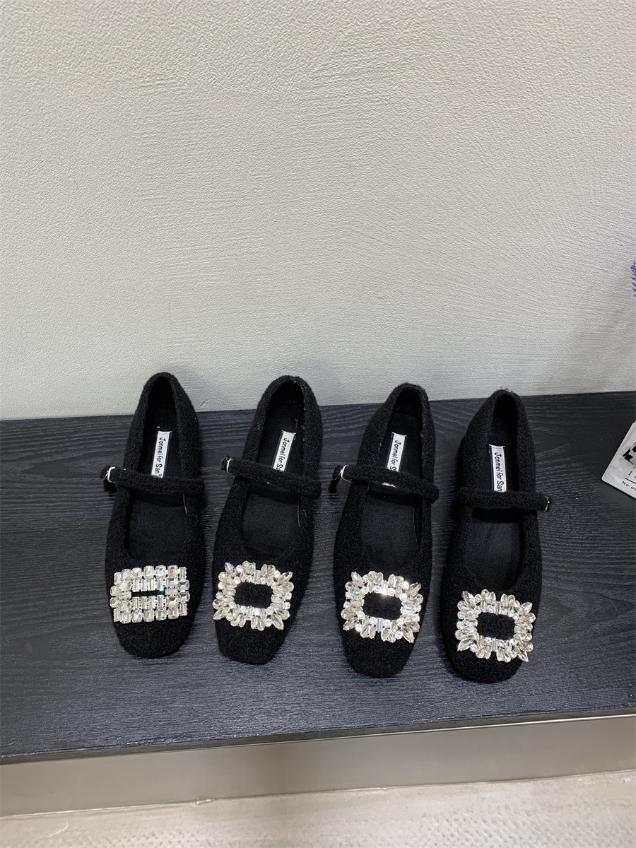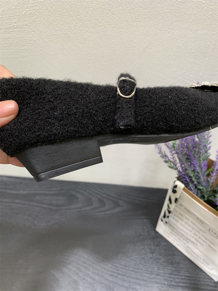 Xiaoxiang 스타일의 검은 색 모조 다이아몬드 기모 사각 머리 Mary Jane 신발 가을 및 겨울 따뜻한 푹신한 신발을위한 여성용 두꺼운 뒤꿈치 플러시 면화 신발스토어 가기