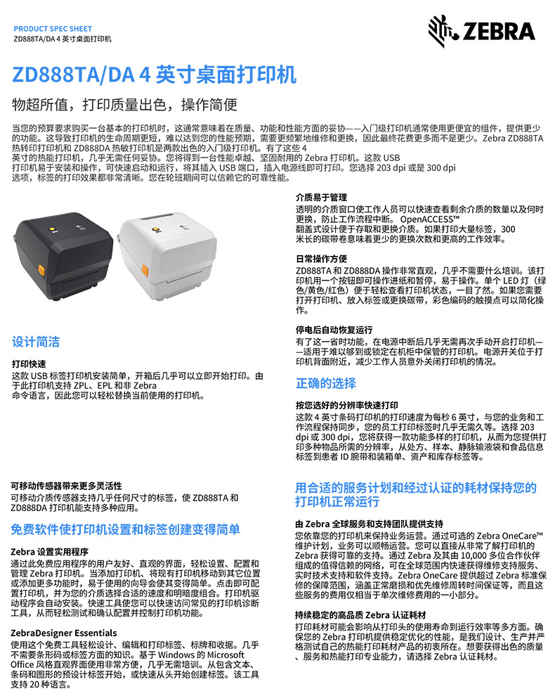 ZEBRA Zebra ZD888T 데스크탑 유형 4inch 라벨 프린터 열전사 열전사 GK888 업그레이드 스티커