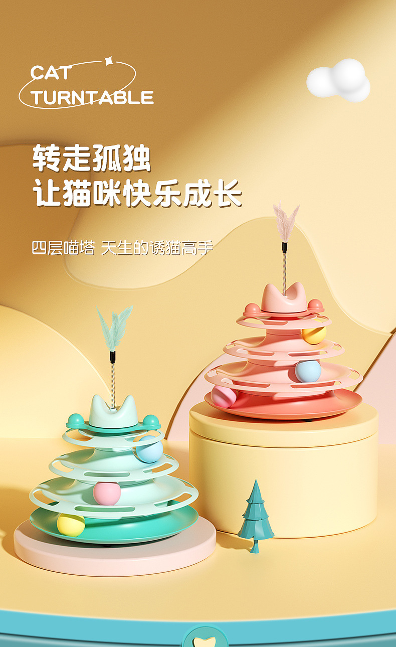 대외 무역 폭발 고양이 턴테이블 장난감 4 층 트랙 재미 고양이 장난감 셀프 하이 애완 동물 장난감 용품