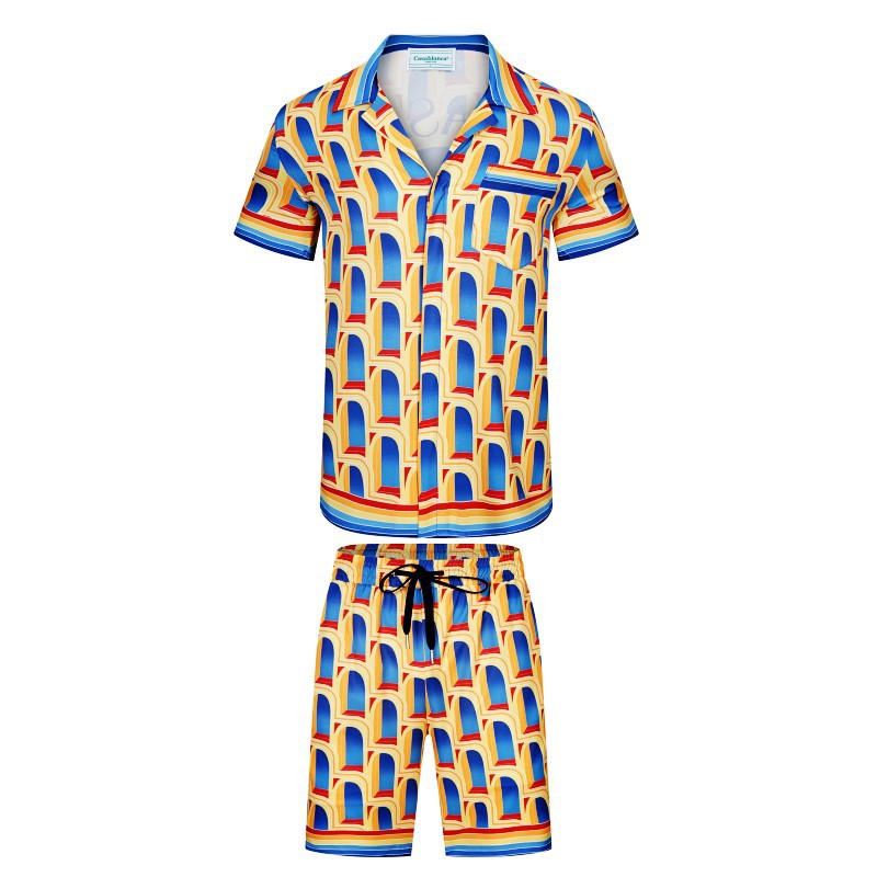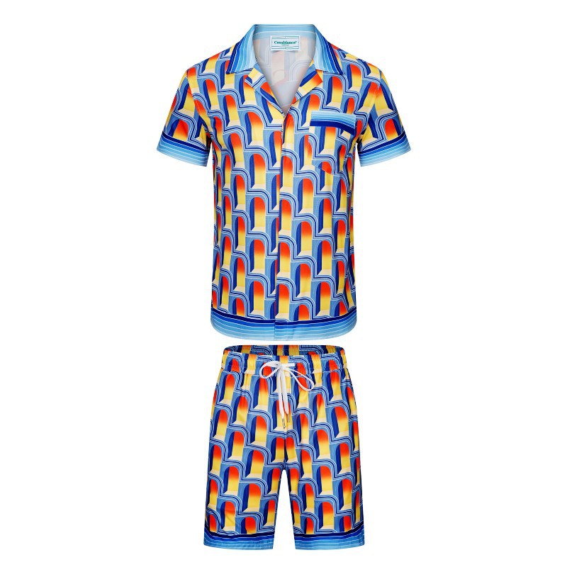 카사블랑카 카사블랑카 빈티지 트렌드 비치 짧은 소매 꽃 셔츠 커플 반바지 세트 두 X20스토어 가기