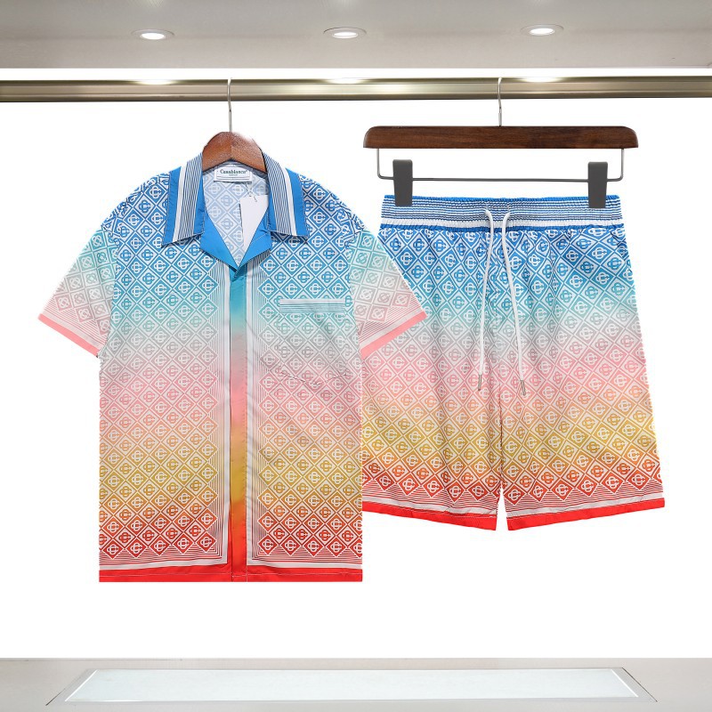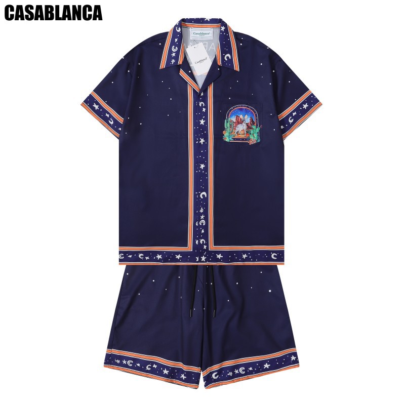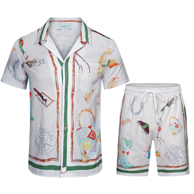 카사블랑카 카사블랑카 빈티지 트렌드 비치 짧은 소매 꽃 셔츠 커플 반바지 세트 두 X20
