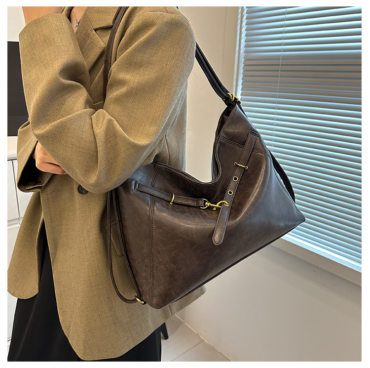 빈티지 통근 토트 백 여성 대용량 2024 새로운 캐주얼 올 매치 숄더 백 스트리트 트렌디 여행 배낭스토어 가기
