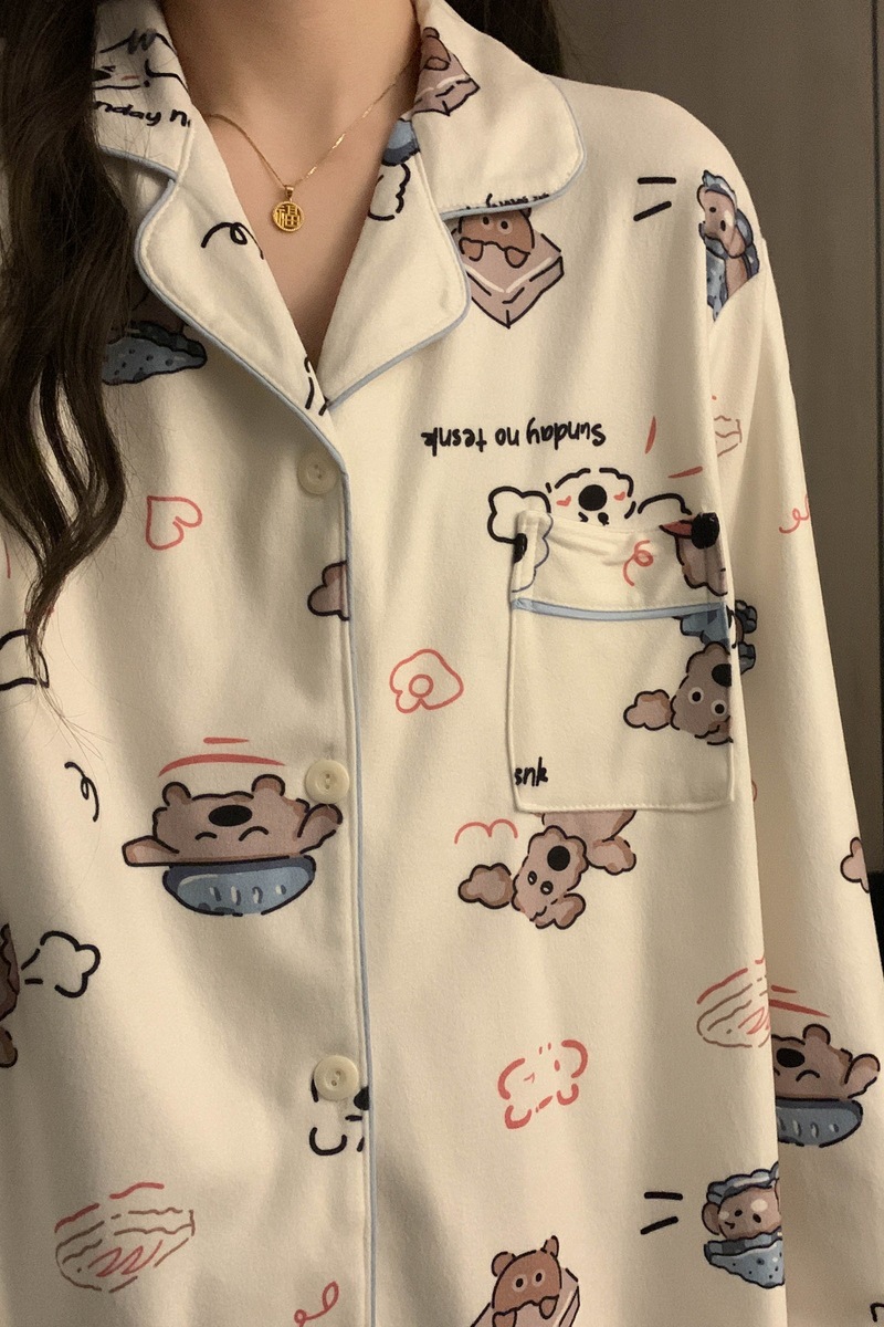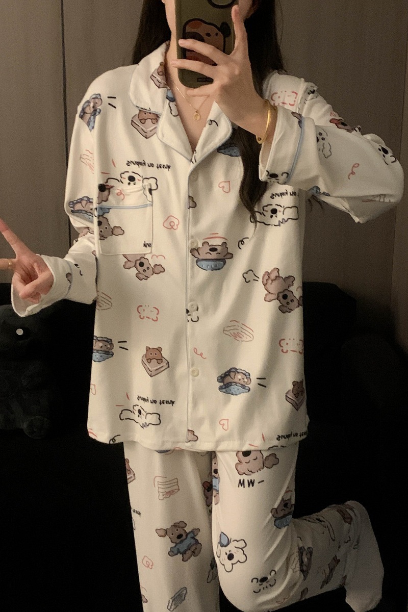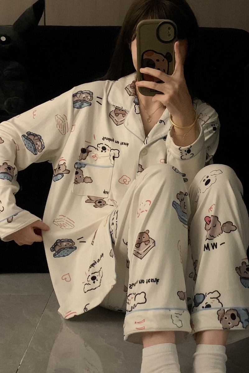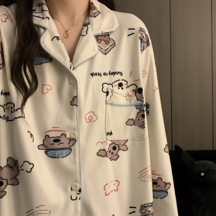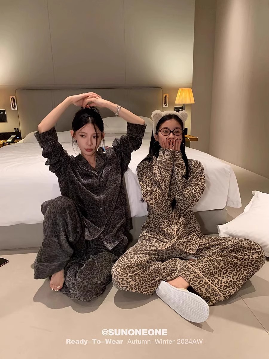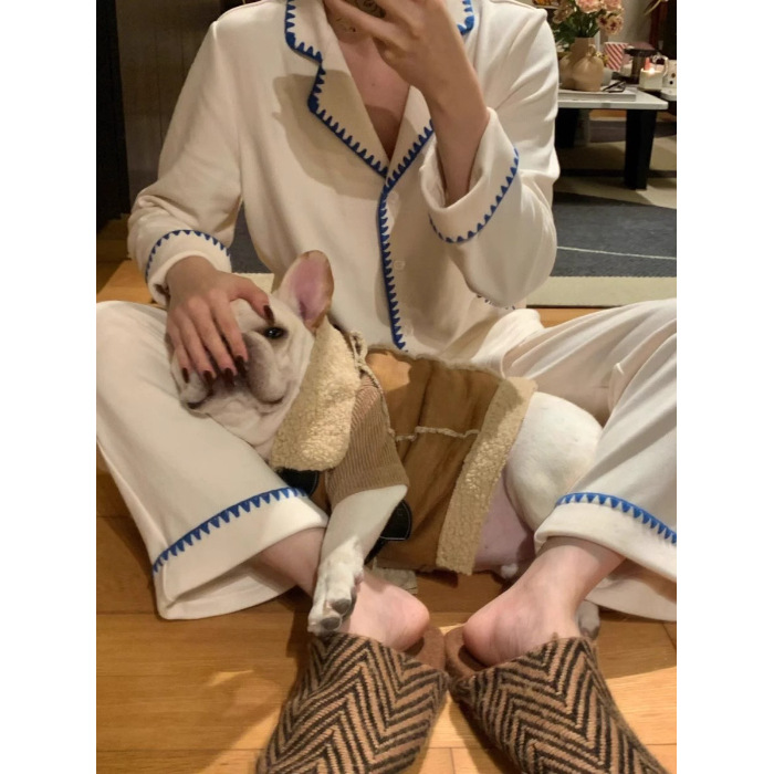 2024 겨울 새로운 한국 스타일 간단한 달콤한 인터넷 연예인 Ins 스타일 여자 블루 에지 Nsei 파자마 여성 홈 의류스토어 가기