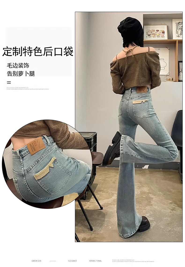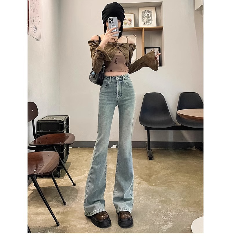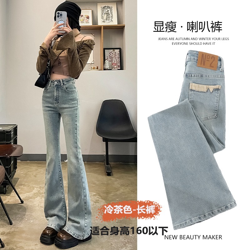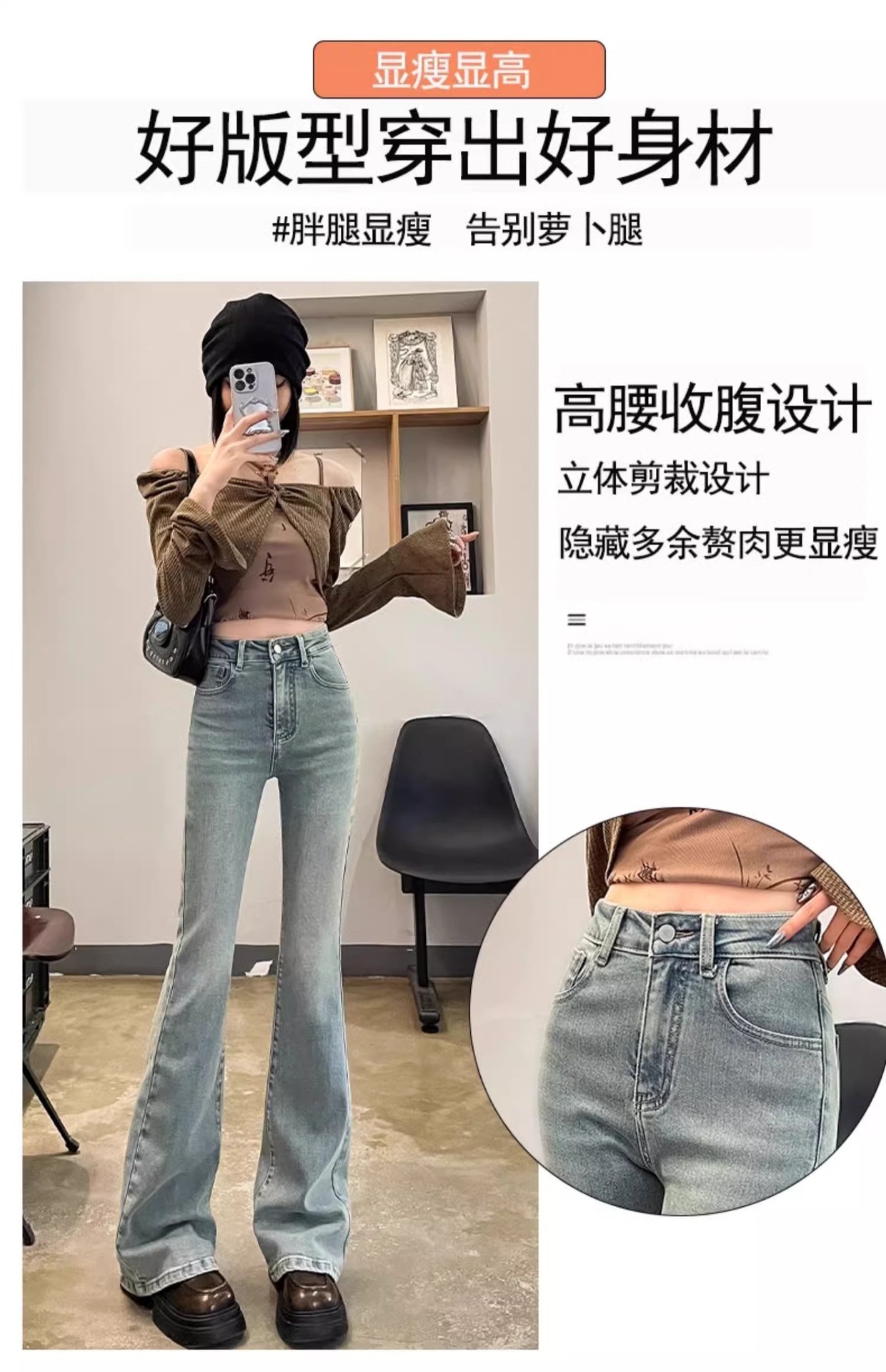 마이크로 라 청바지 여성의 2024 새로운 가을 얇은 높은 허리 말굽 경적 바지 작은 스트레치 트렌디스토어 가기