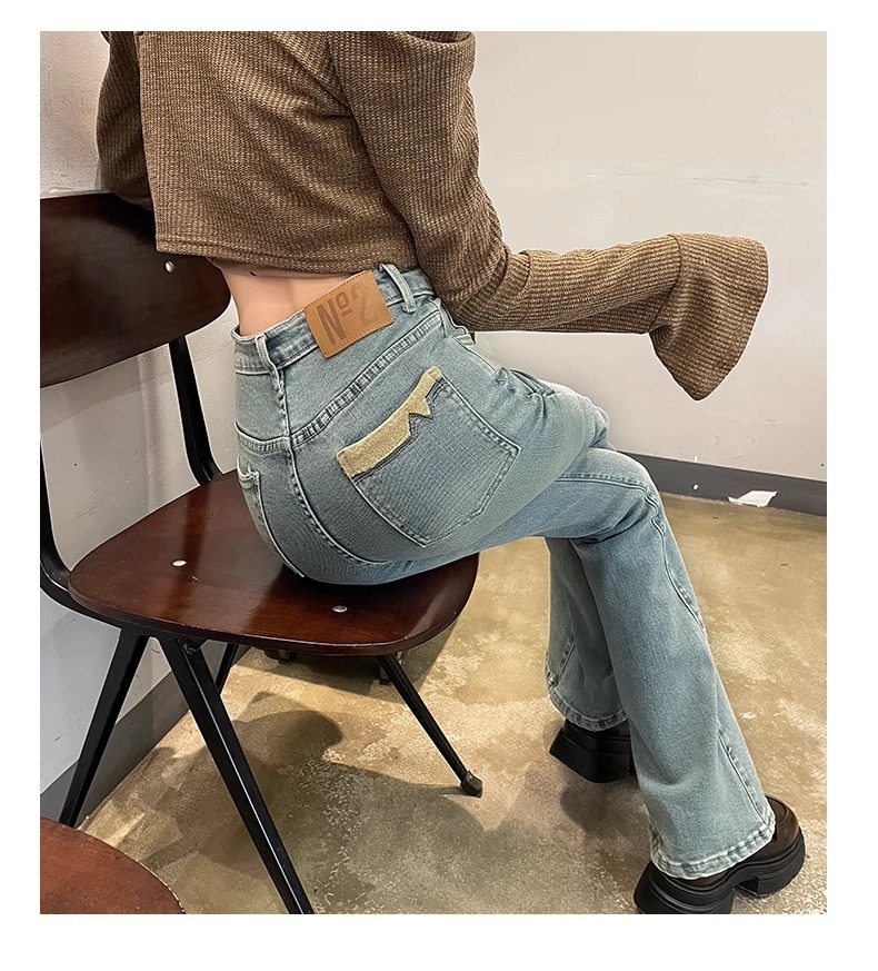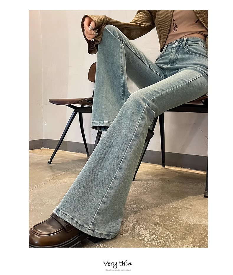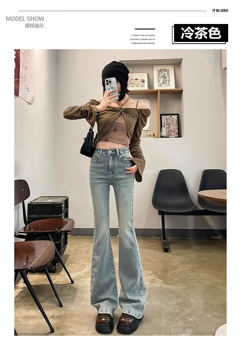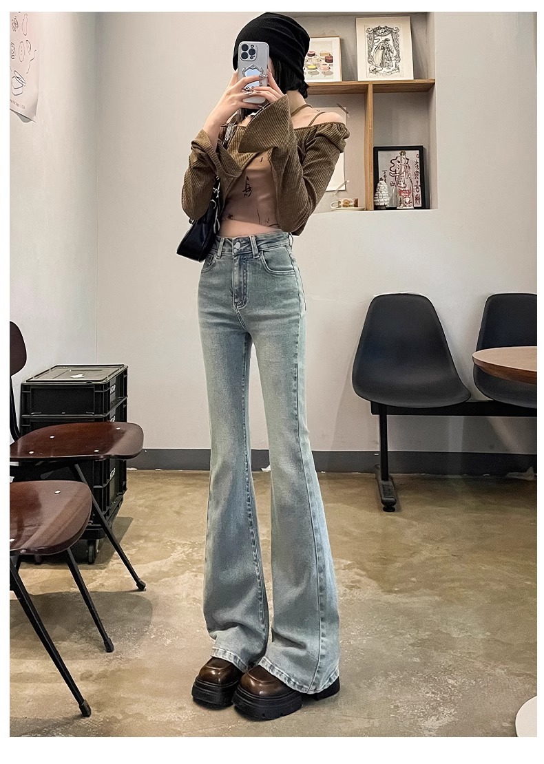 마이크로 라 청바지 여성의 2024 새로운 가을 얇은 높은 허리 말굽 경적 바지 작은 스트레치 트렌디스토어 가기