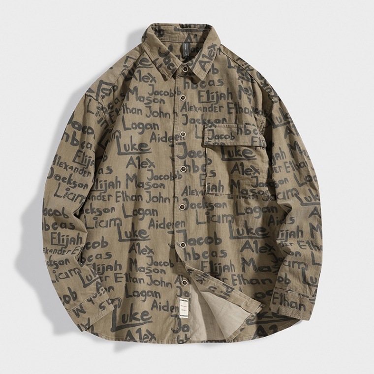 봄과 가을 전체 인쇄 셔츠 남성 일본 스타일 복고풍 캐주얼 느슨한 올 매치 작업 옷깃 셔츠 재킷