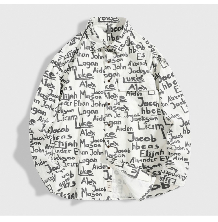 봄과 가을 전체 인쇄 셔츠 남성 일본 스타일 복고풍 캐주얼 느슨한 올 매치 작업 옷깃 셔츠 재킷스토어 가기