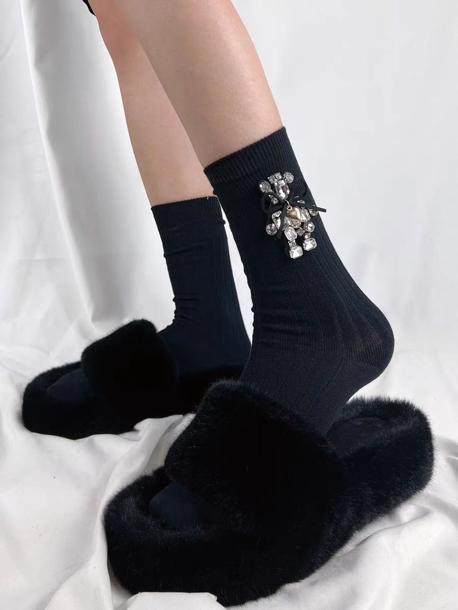 24 가을 새 양말 여성 유럽 무거운 다이아몬드 곰 jk 검은 스타킹 스포츠 스타킹 조수에스토어 가기