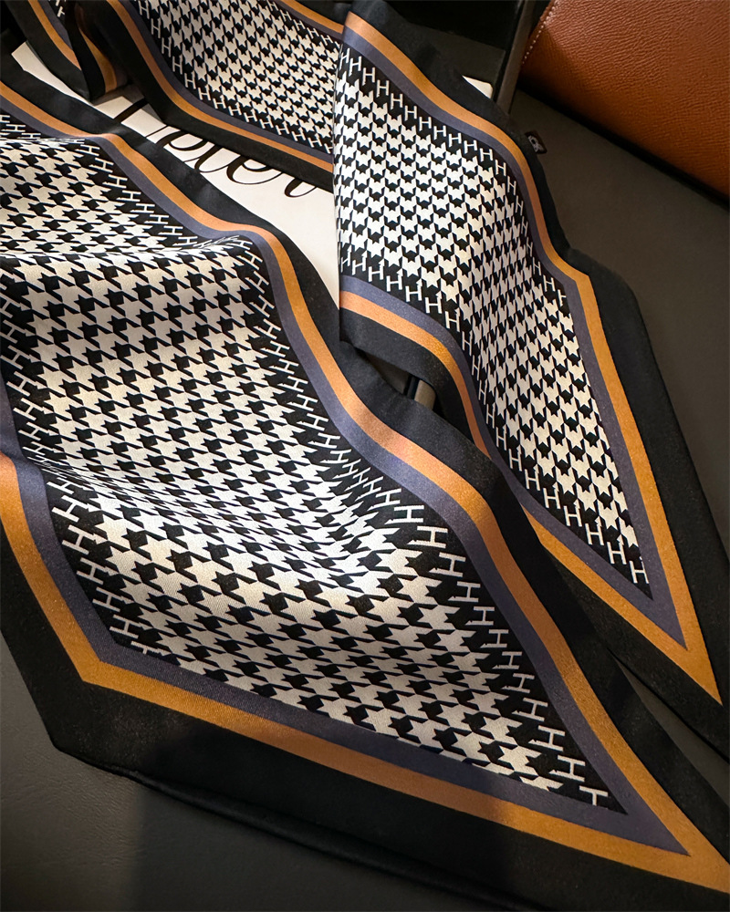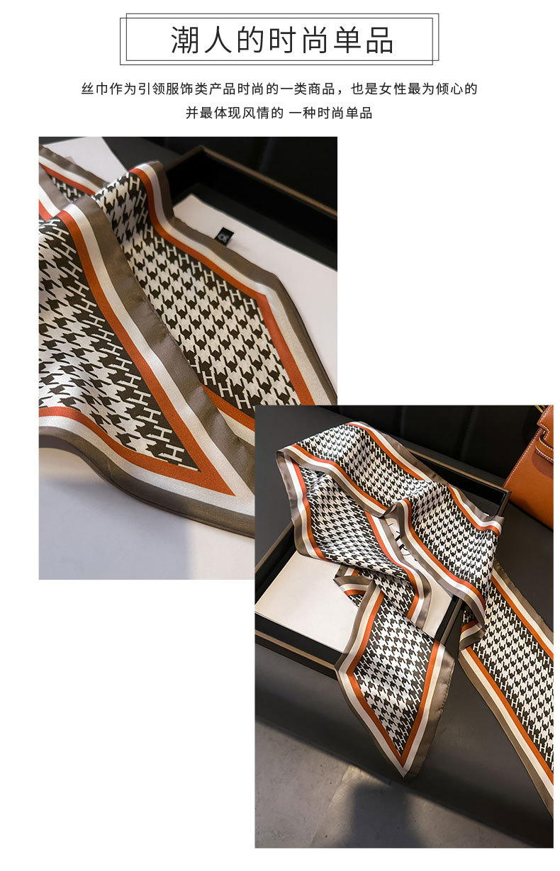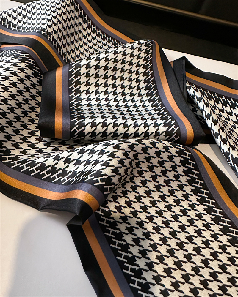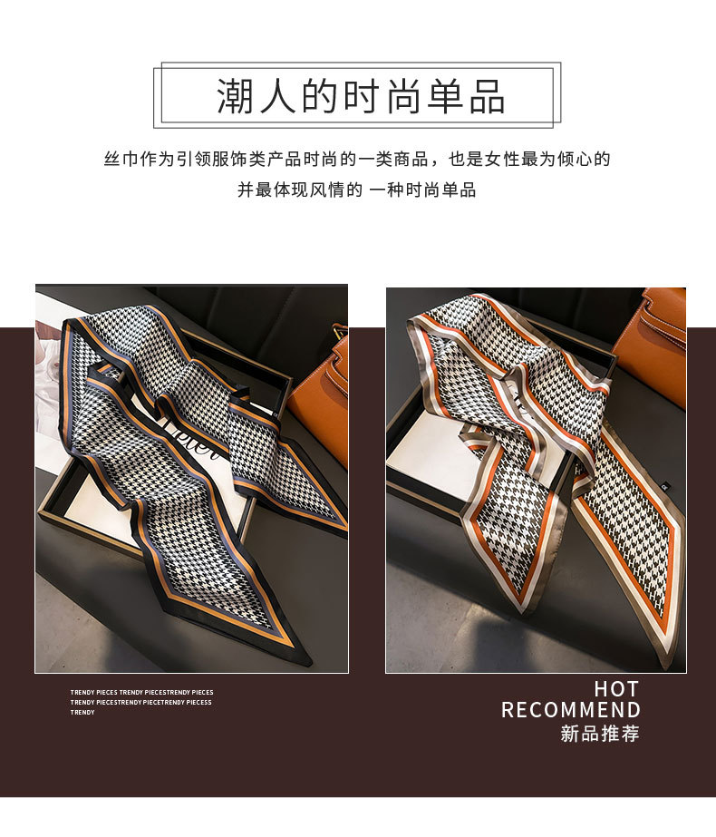 새로운 Houndstooth 실크 더블 레이어 스카프 장식 스카프 통근 봄과 여름 베벨 스카프 올 매치 얇은 좁은 리본스토어 가기
