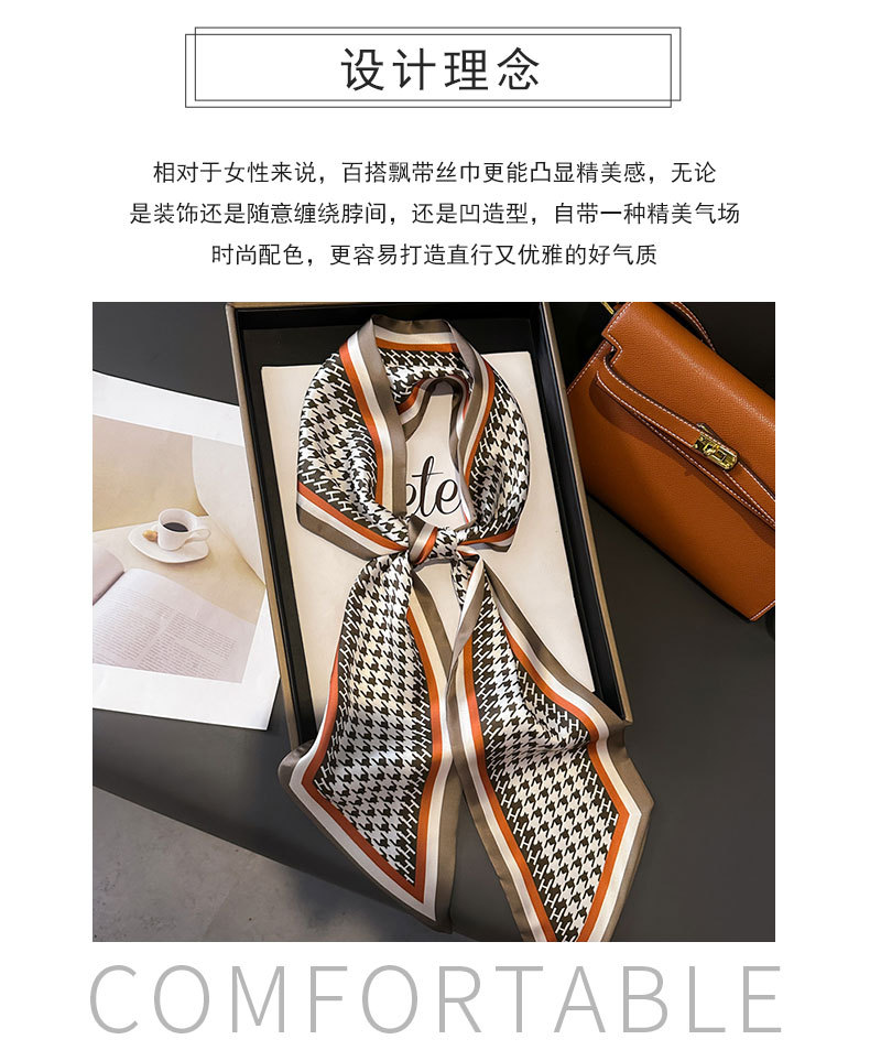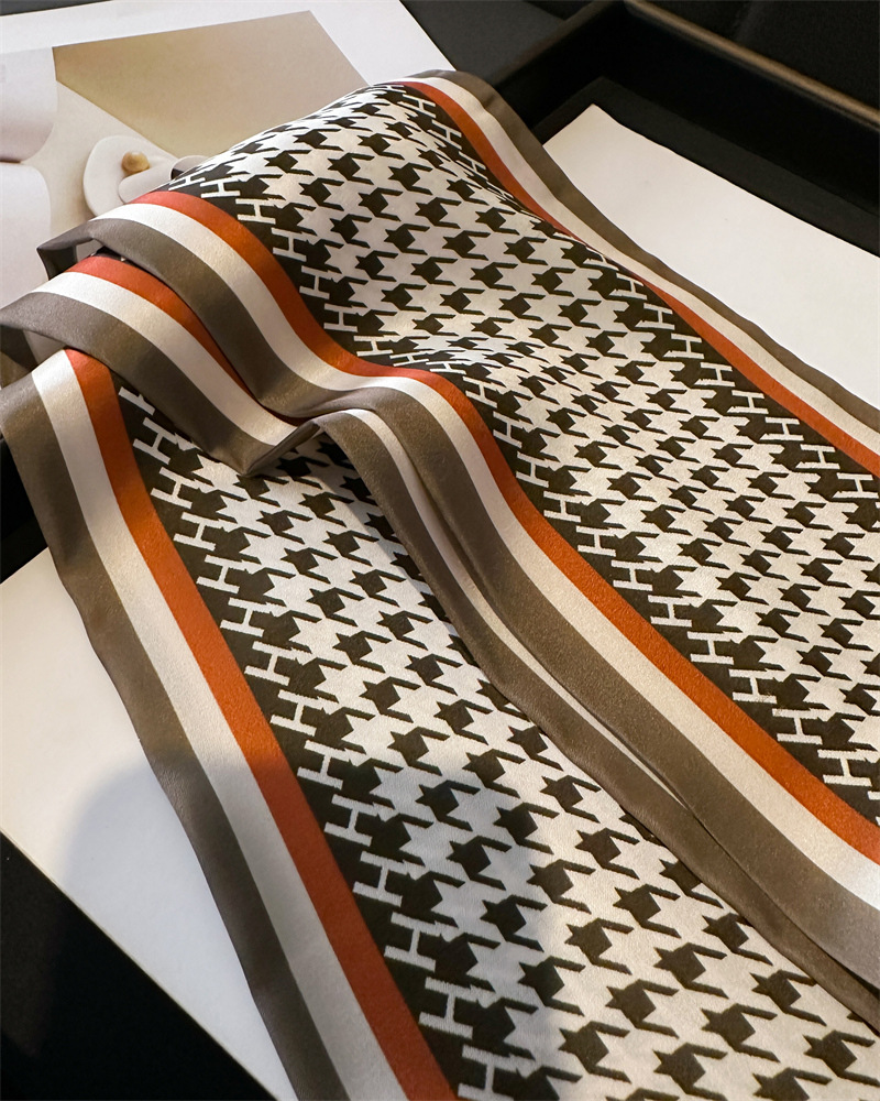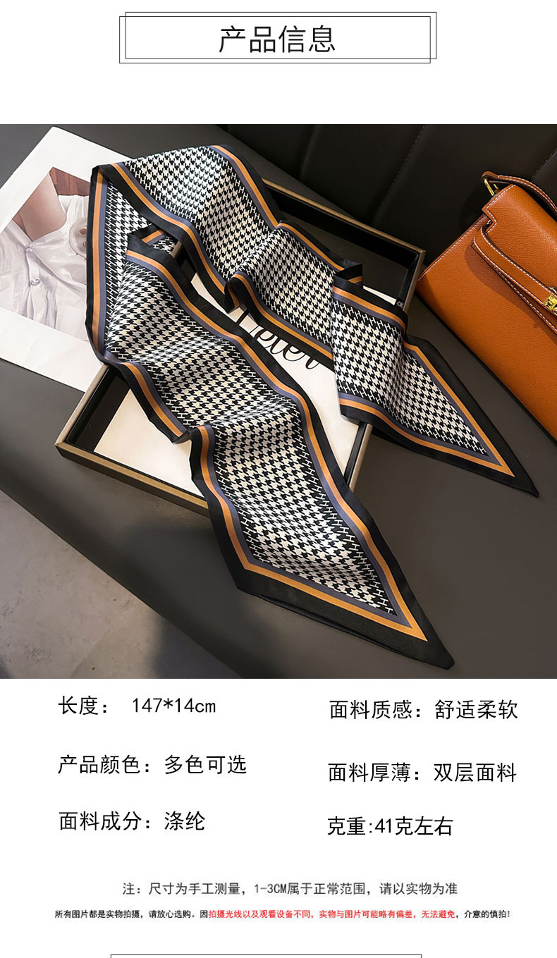 새로운 Houndstooth 실크 더블 레이어 스카프 장식 스카프 통근 봄과 여름 베벨 스카프 올 매치 얇은 좁은 리본