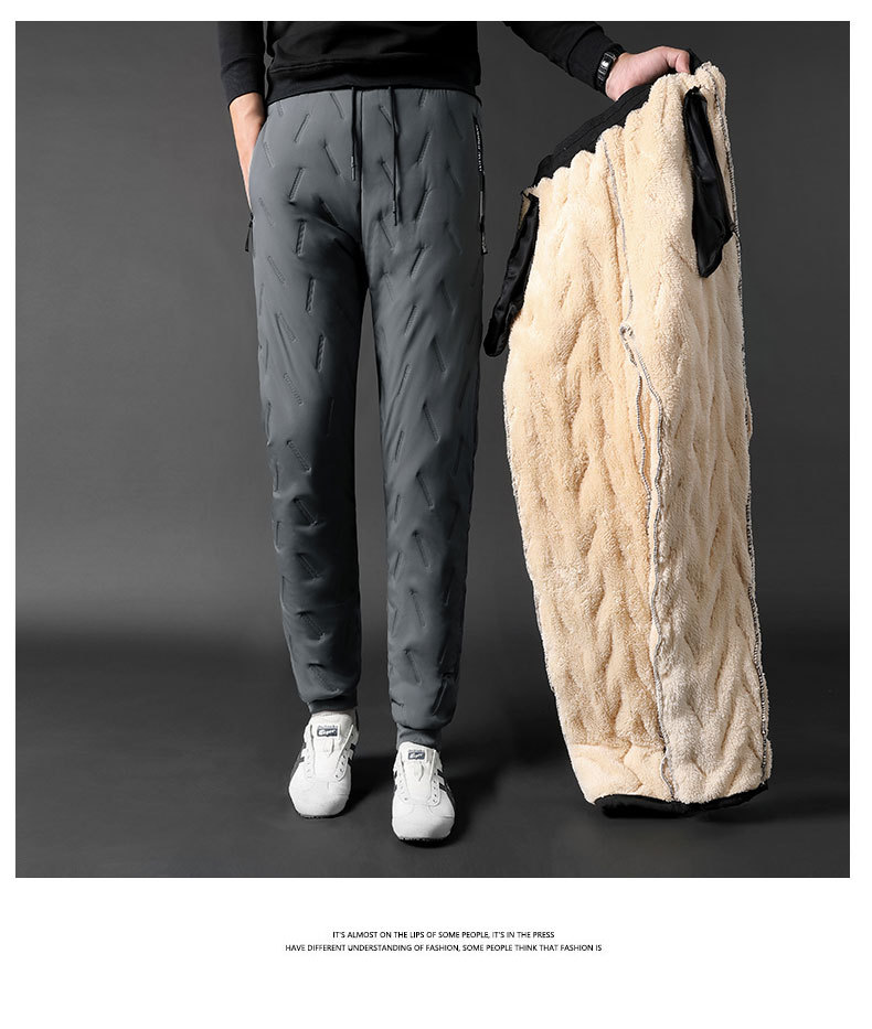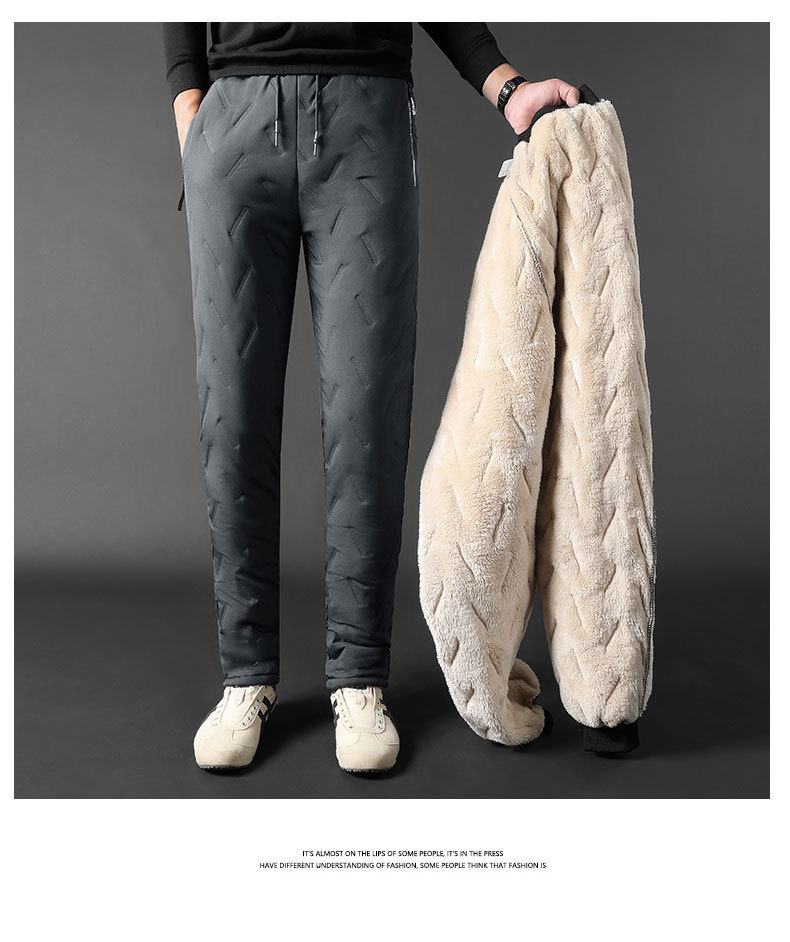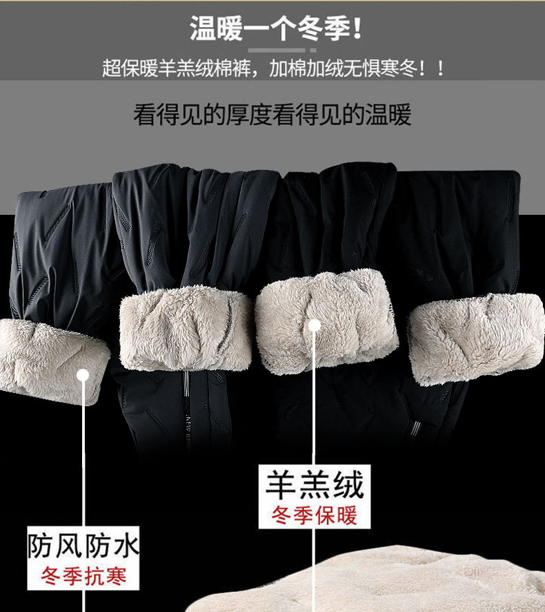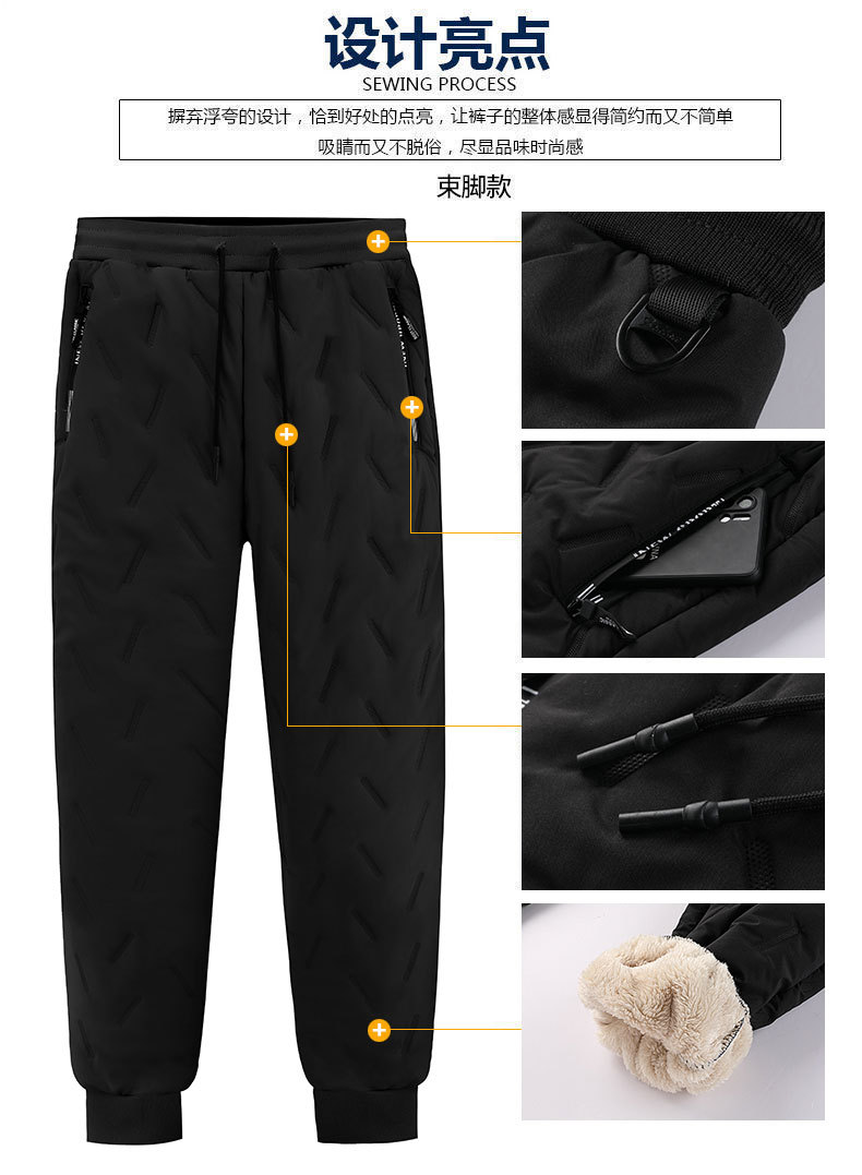 겨울 양고기 양털 바지 남자 기모 두꺼운 방풍 방수 따뜻한 야외 따뜻한 연면 바지 플러스 사이즈 운동복
