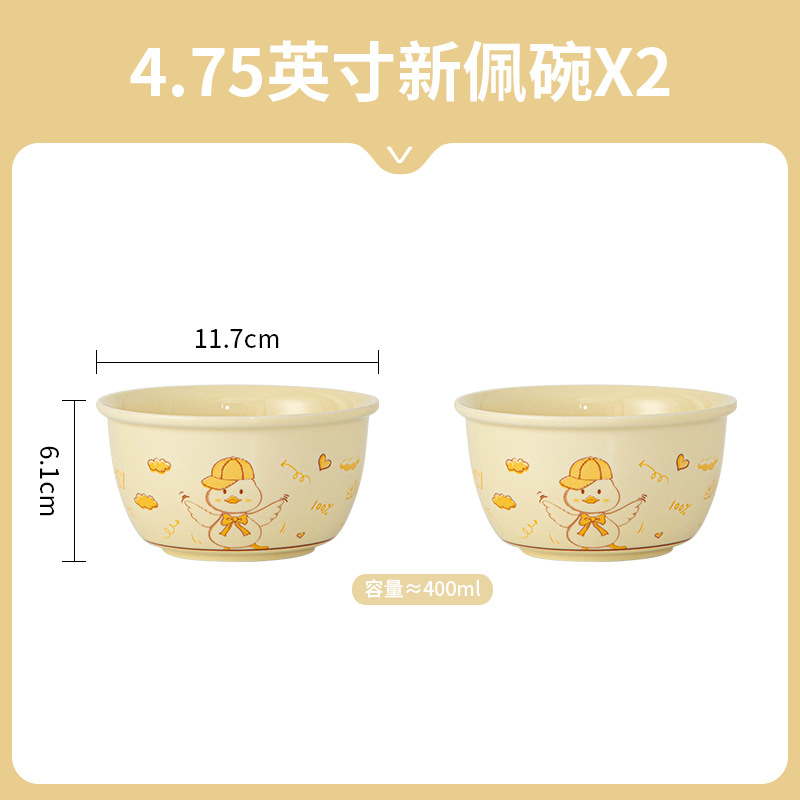 귀여운 오리 만화 세라믹 그릇과 접시 세트 가정용 밥 그릇 크림 스타일 1 인 식기 그릇 및 젓가락 세트스토어 가기