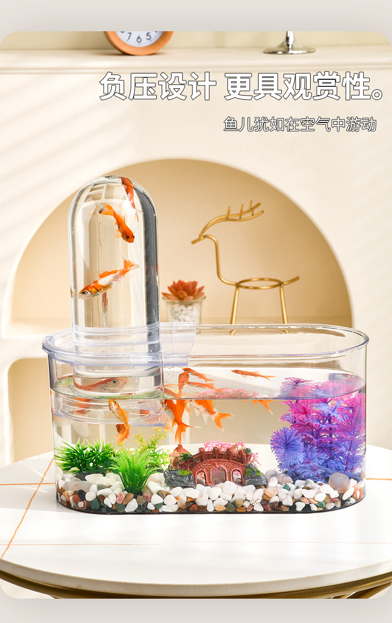 음압 물고기 탱크 브래킷 물 진공 서스펜션 작은 데스크탑 금붕어 탱크 생태 조경 플라스틱 양동이 물고기 수족관