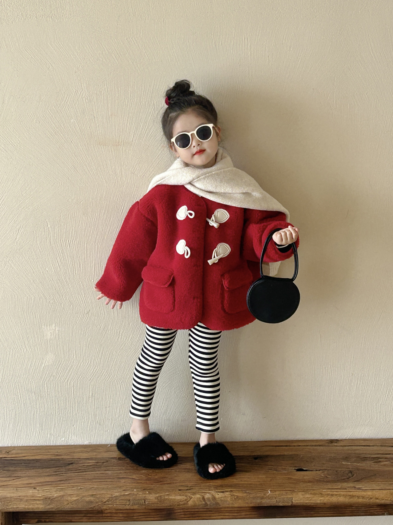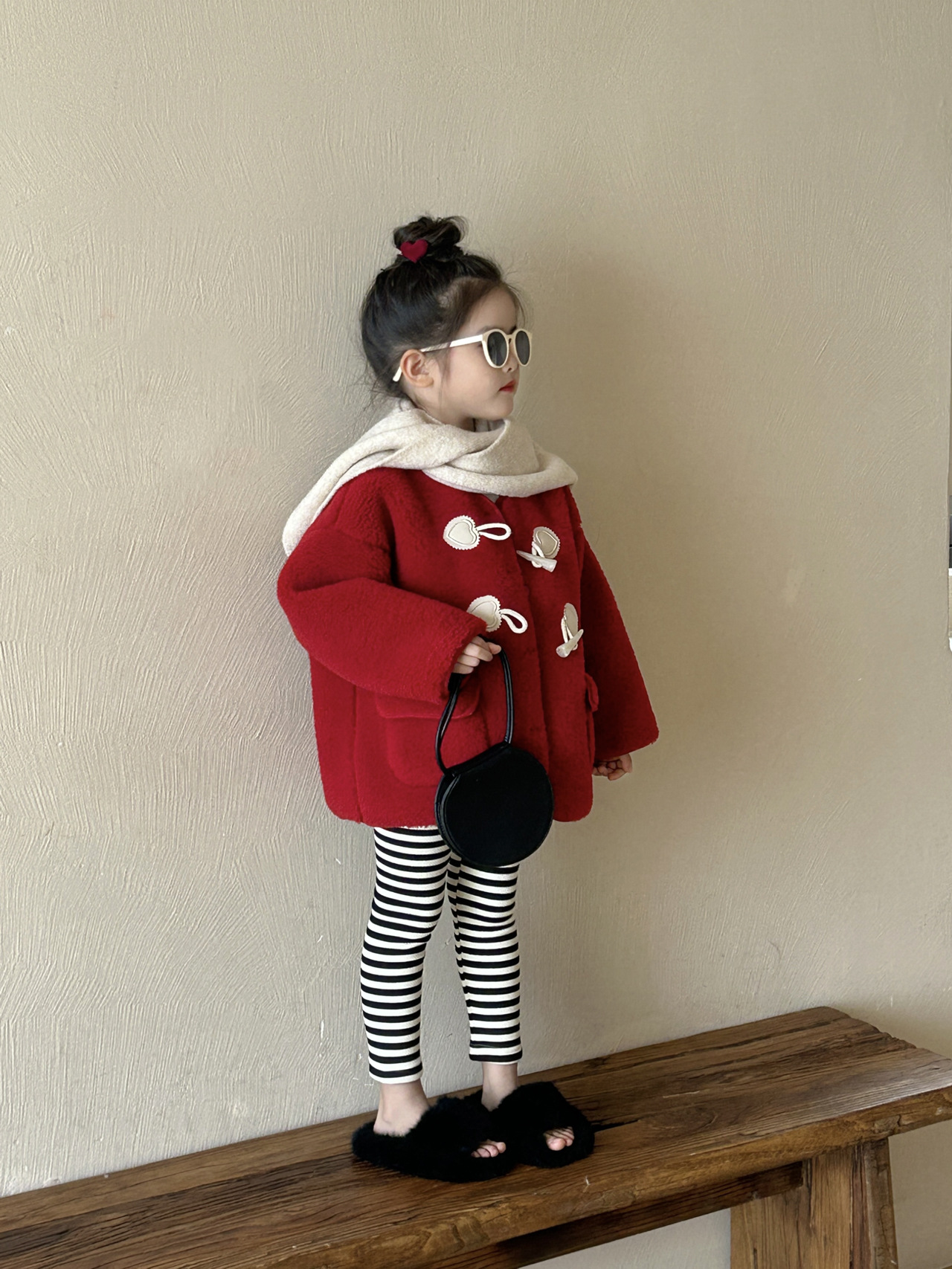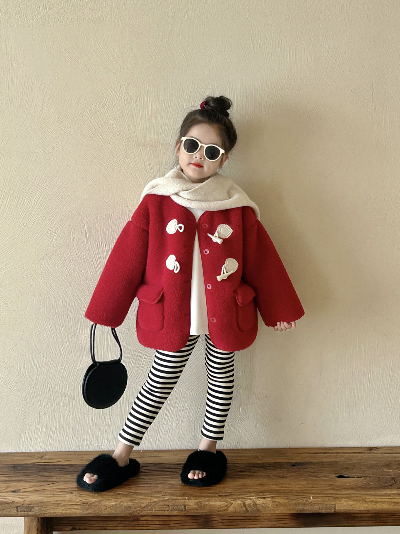 여자 모피 코트 2024 겨울 새 아동복 어린이 붉은 새해 복 두꺼운 봉제 코트스토어 가기