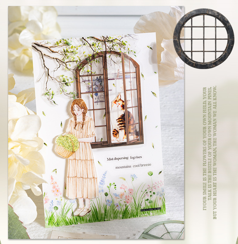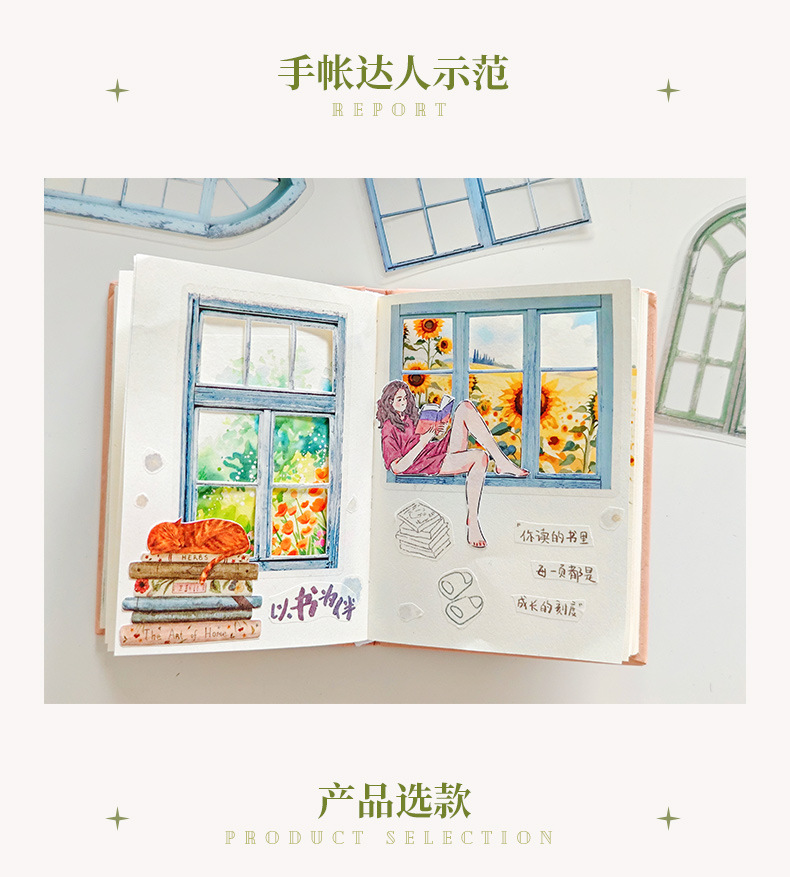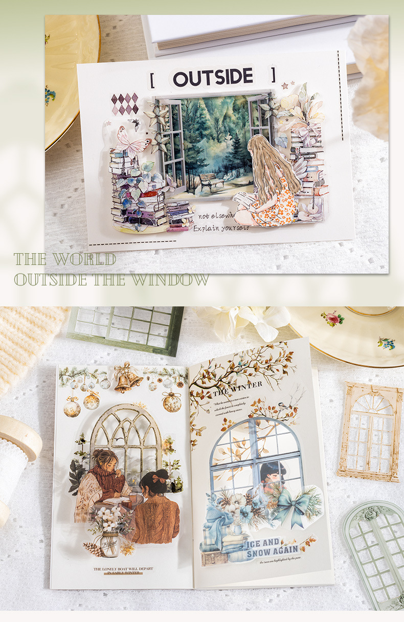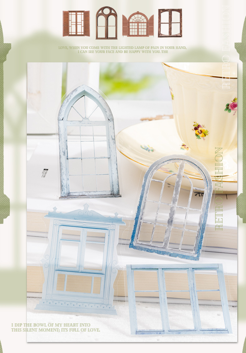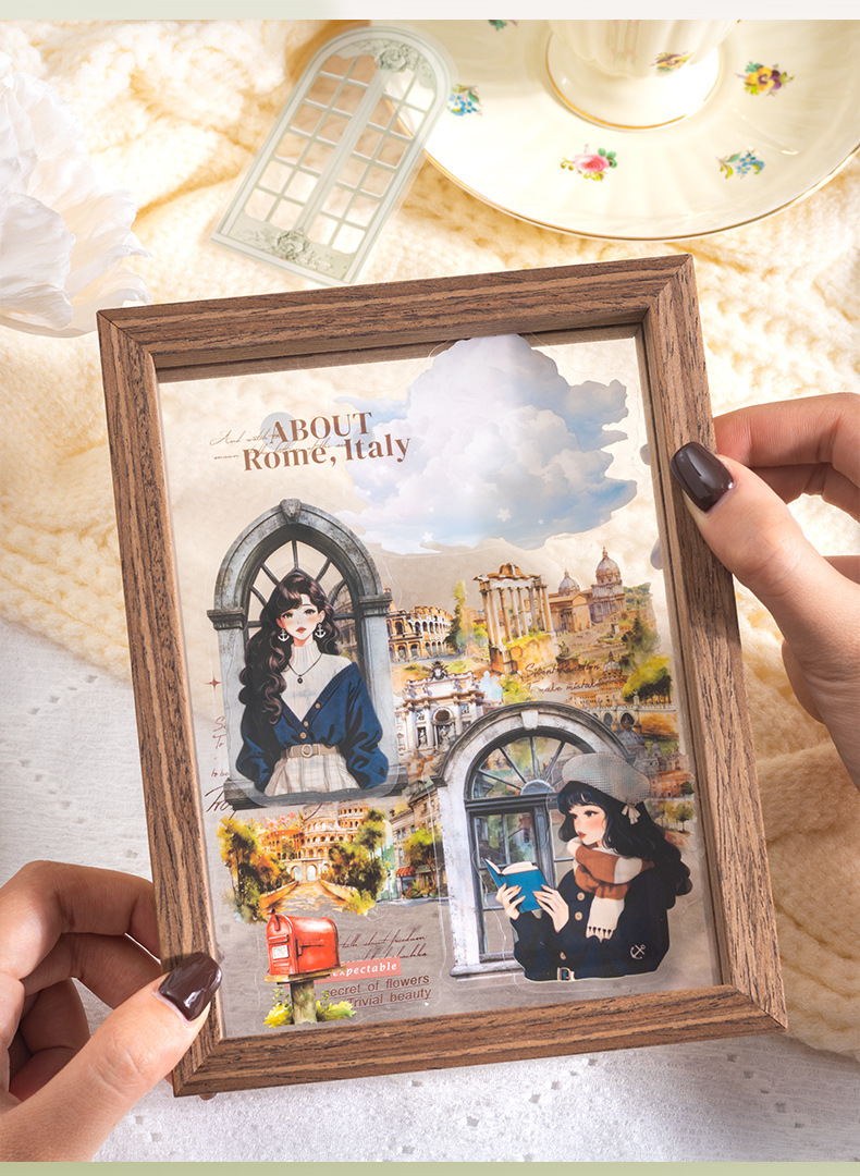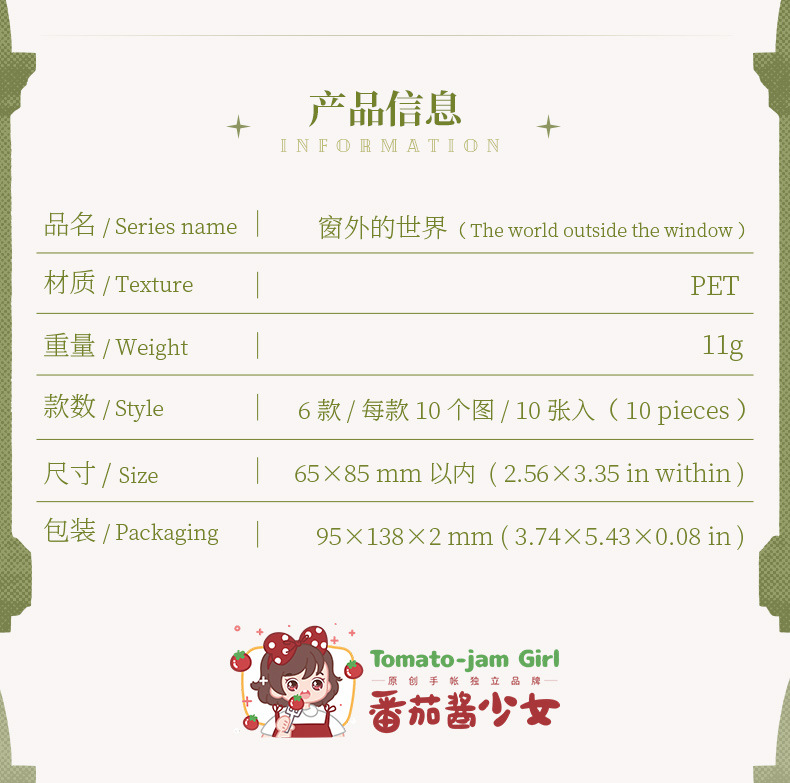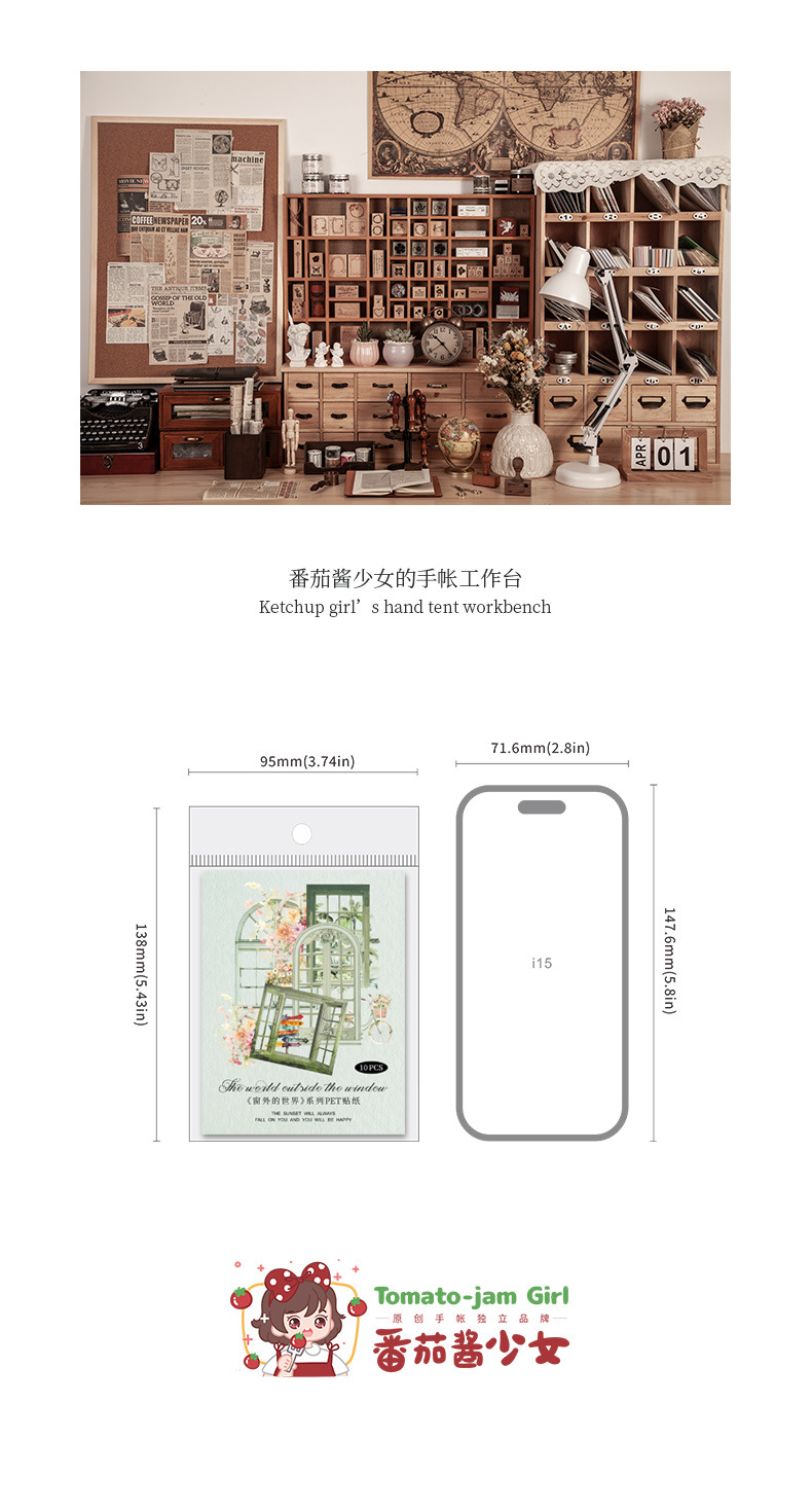 케첩 소녀 창 프레임 테마 애완 동물 스티커 창 세계 시리즈 복고풍 손 계정 장식 콜라주 소재