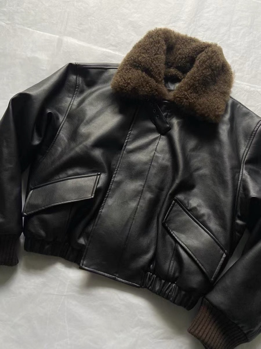 Lem 양털 카라 라지 포켓 블랙 파일럿 패딩 재킷 캐주얼 다용도