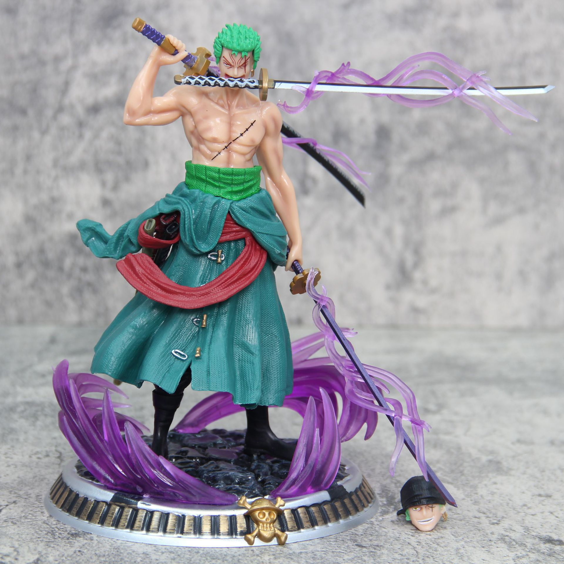 产品信息概览【名称】:海贼王三刀流梦幻索隆手办摆件 浴血索隆小号动漫手办模型摆件