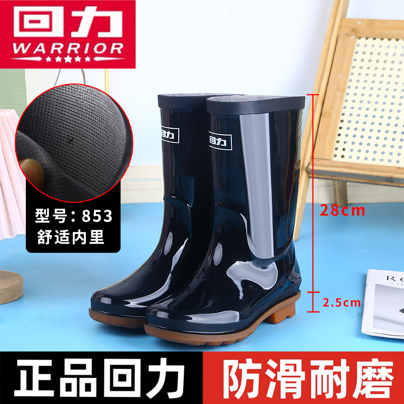 Huili 비 신발 숙녀 853 튜브 물 신발 쇠고기 힘줄 바닥 비 부츠 주방 미끄럼 방지 방수 부츠 노동 보호 고무 신발 도매