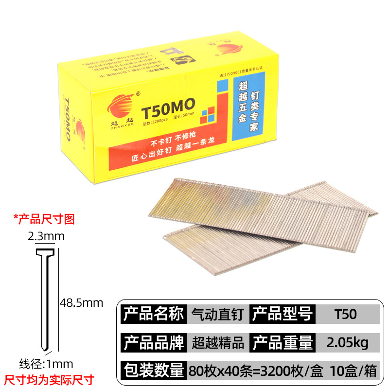 • 일반 T50 스트레이트 네일(760개/박스)을 능가합니다.