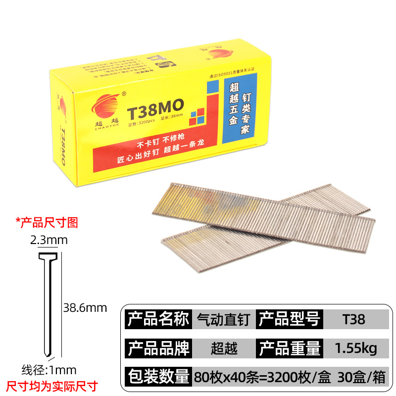 • 일반 T38 스트레이트 네일(760개/박스)을 능가합니다.