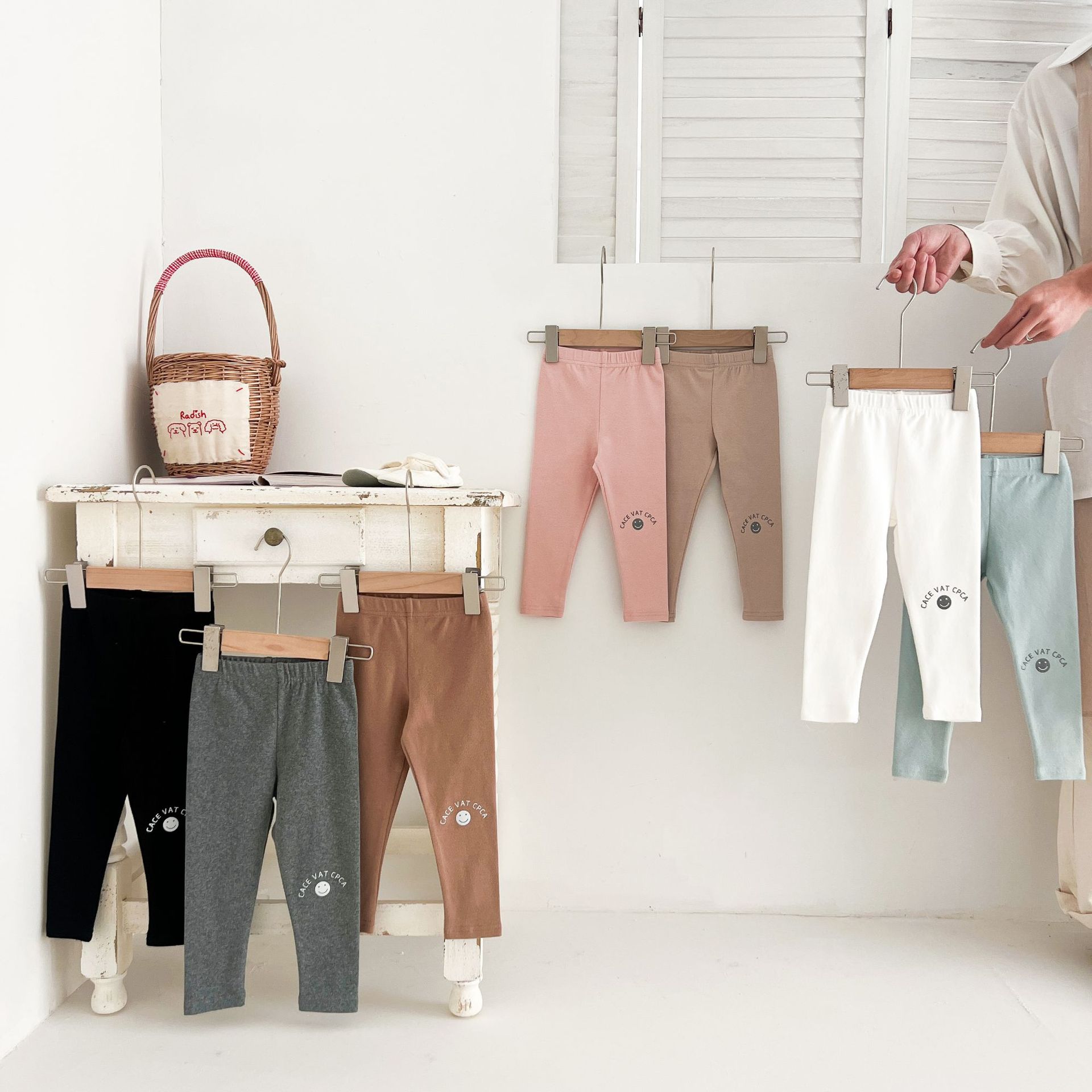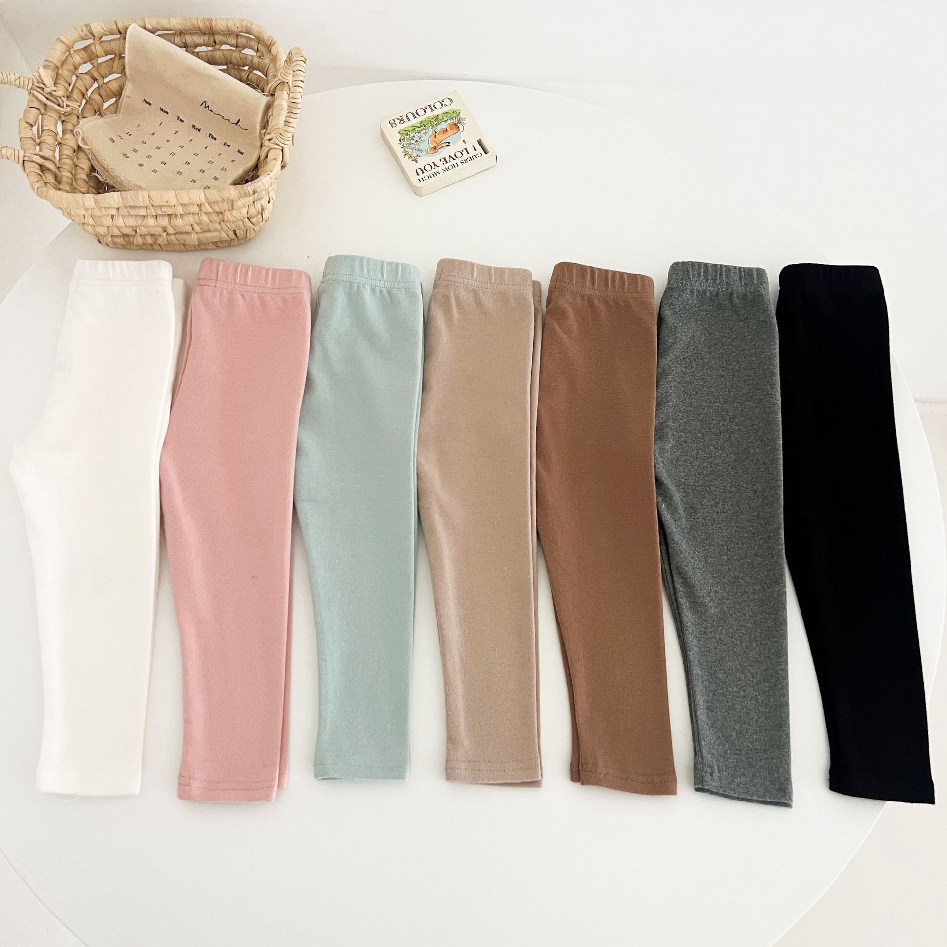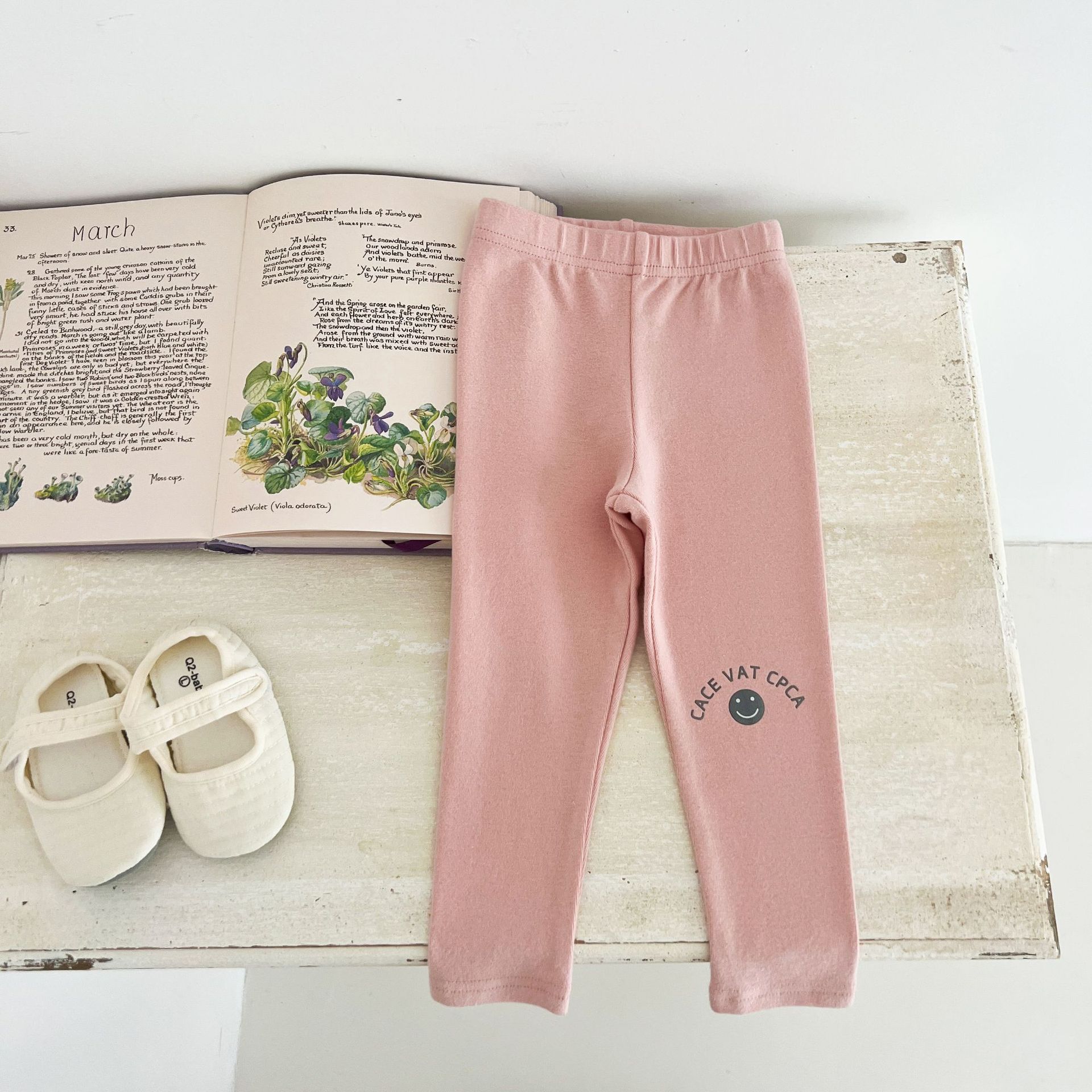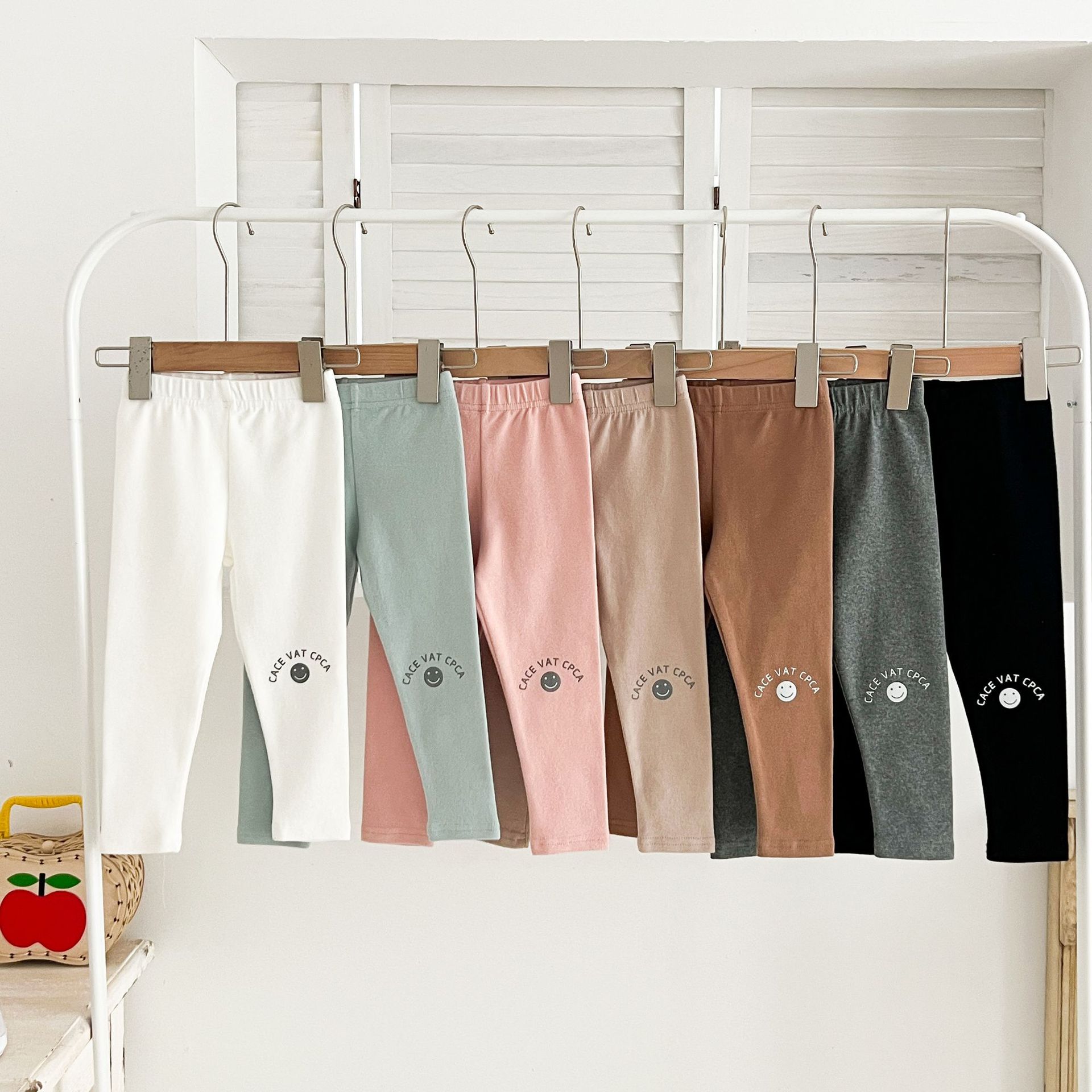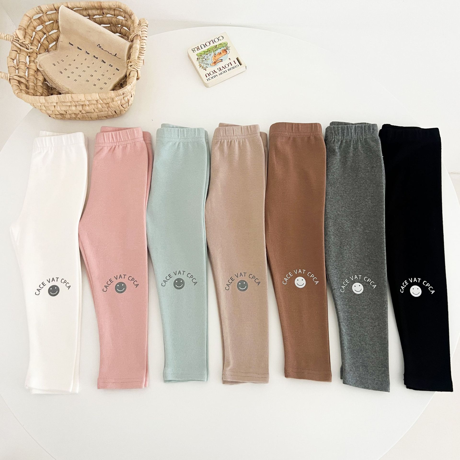 Ins Girls Leggings 봄과 가을 흰색 두꺼운 단색 아기 바지 부드러운 면 블랙 귀여운 인쇄 웃는 얼굴스토어 가기