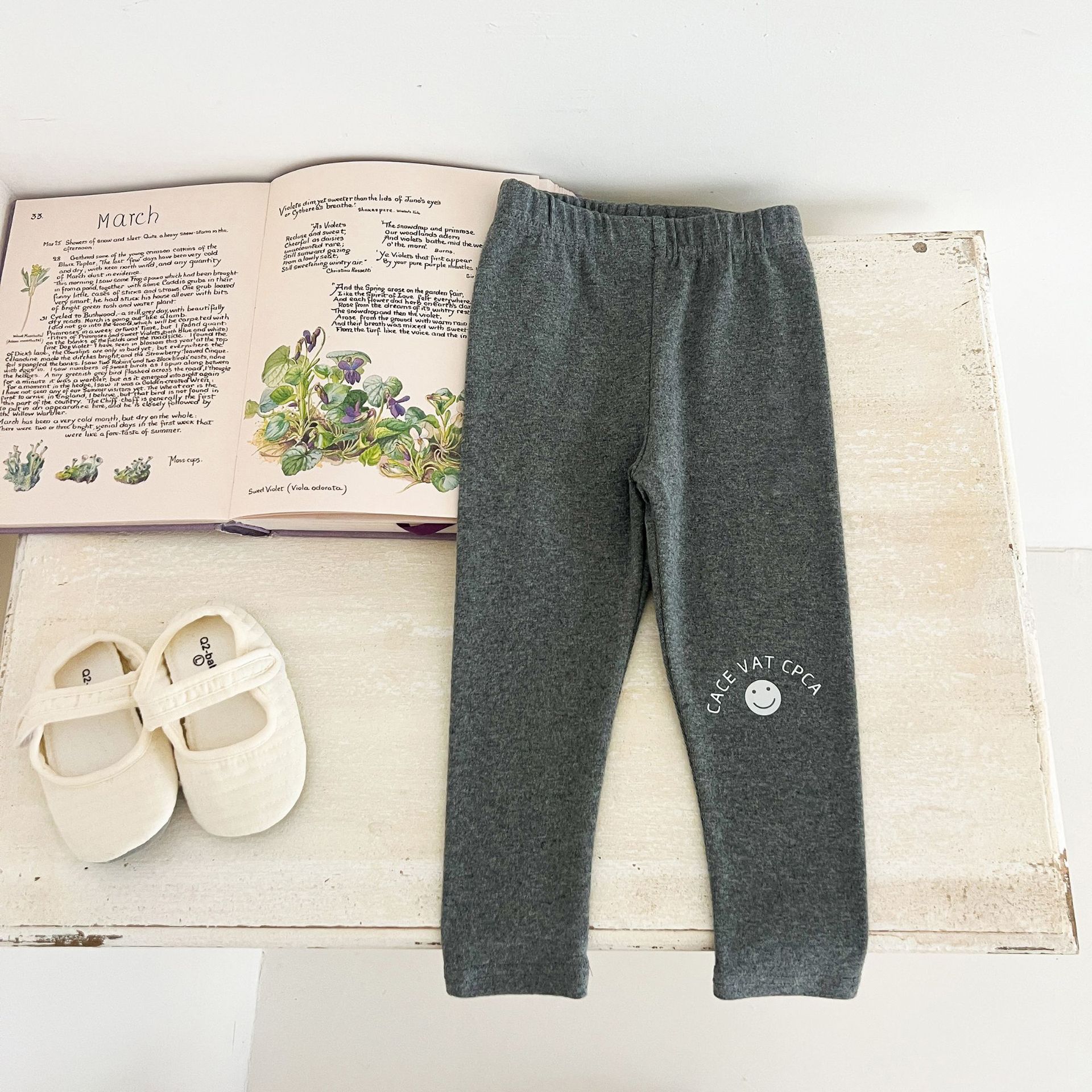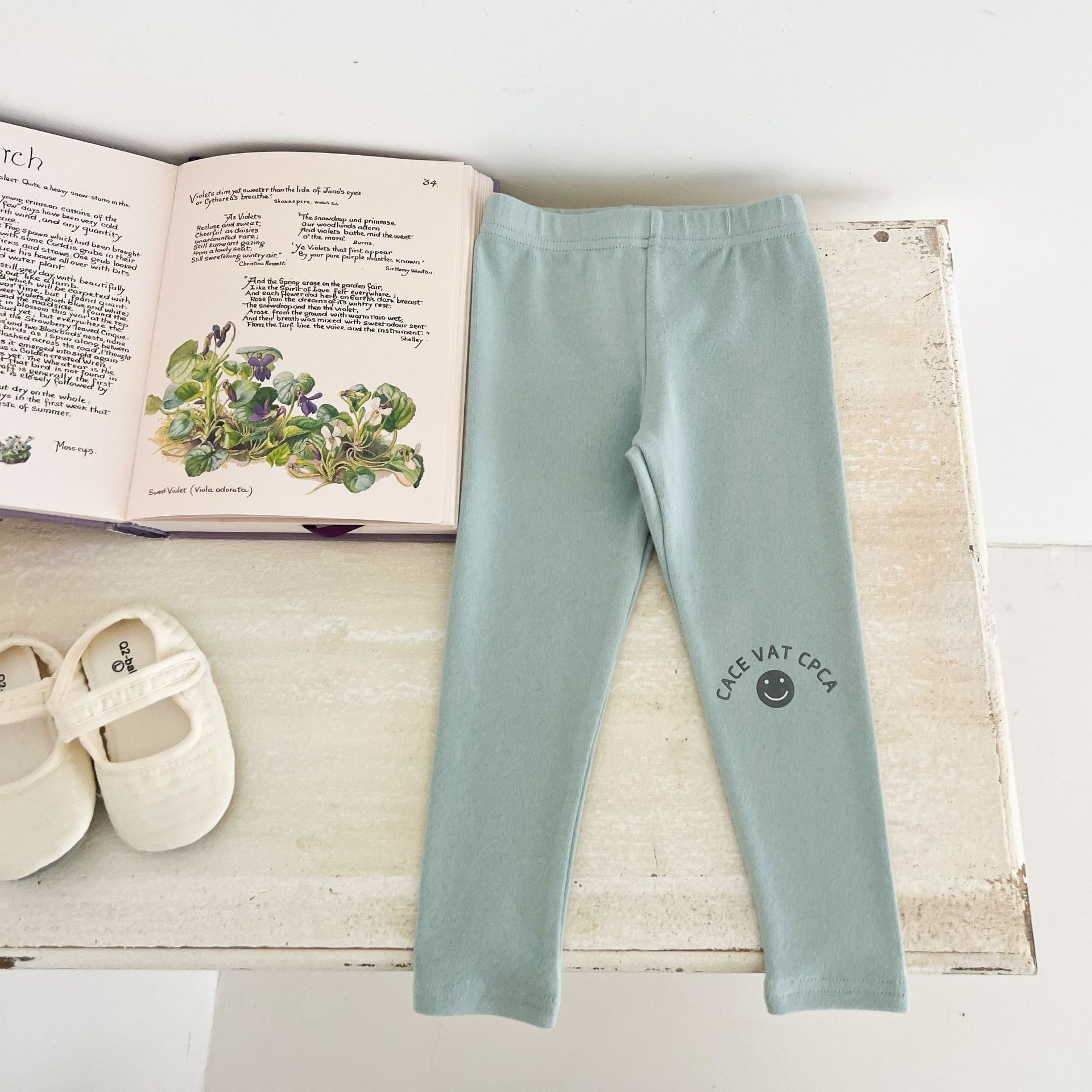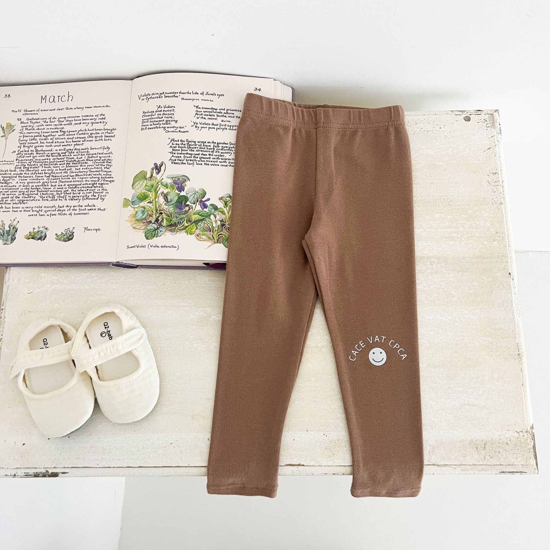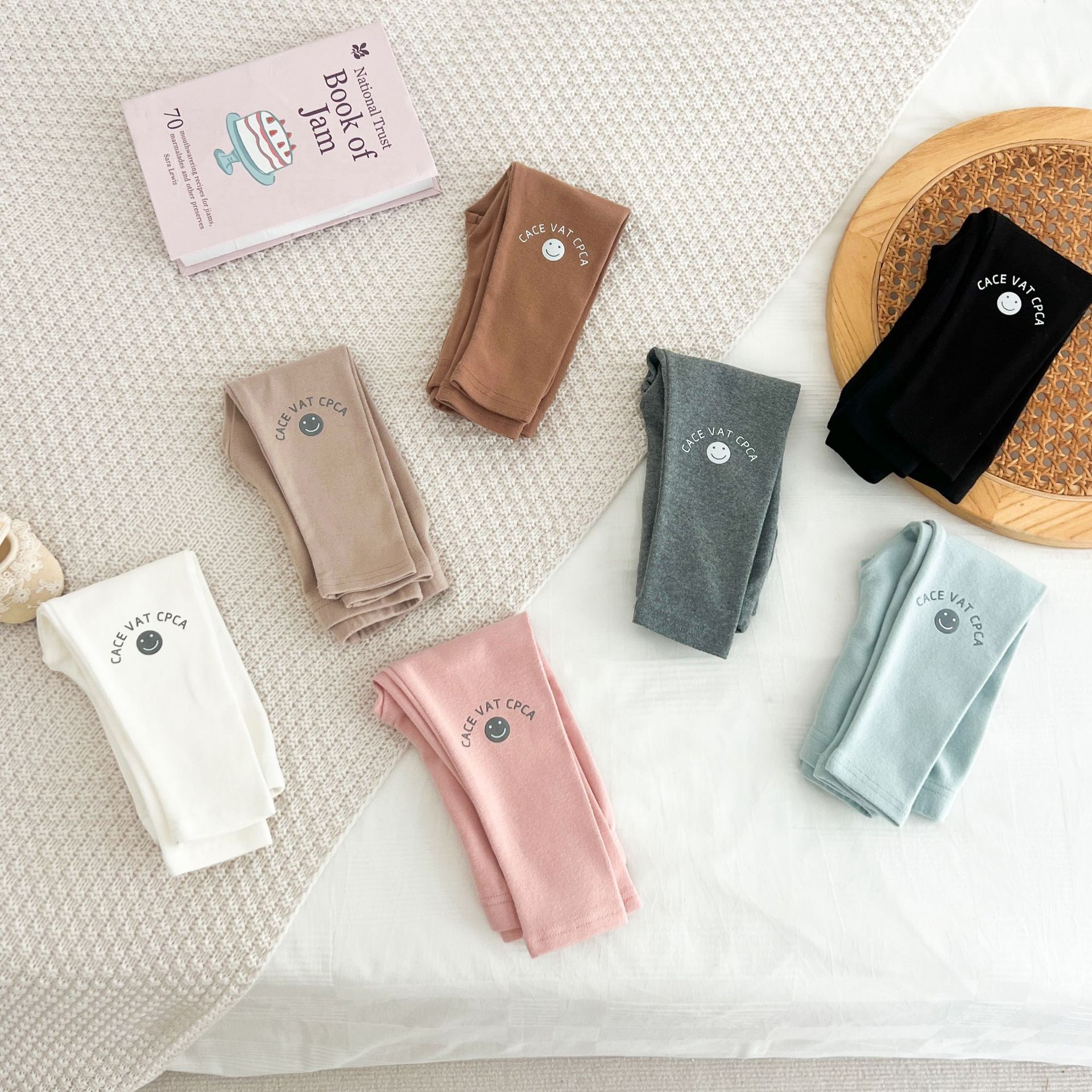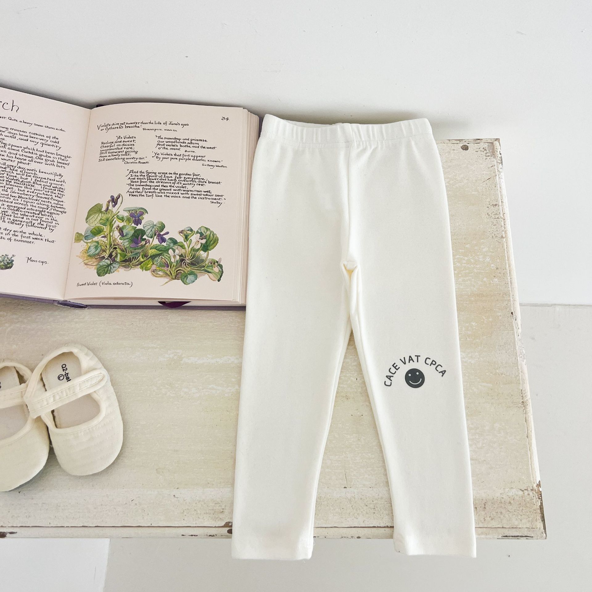 Ins Girls Leggings 봄과 가을 흰색 두꺼운 단색 아기 바지 부드러운 면 블랙 귀여운 인쇄 웃는 얼굴스토어 가기