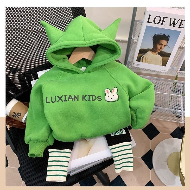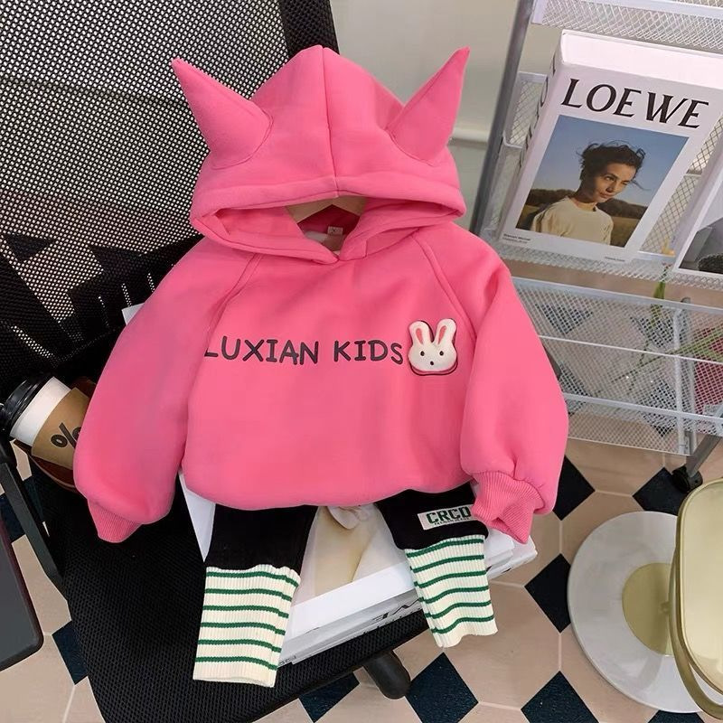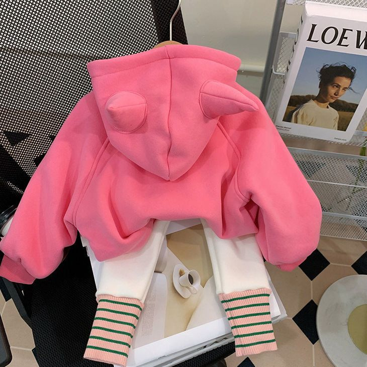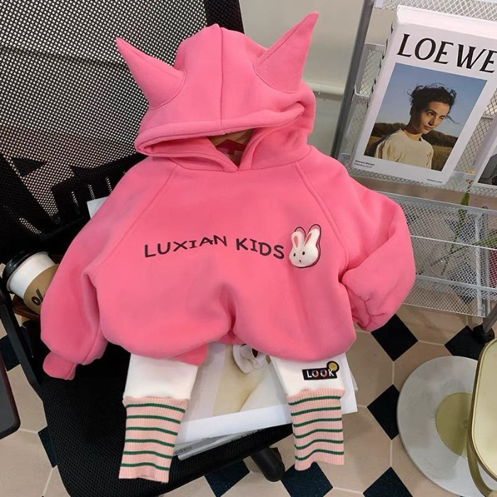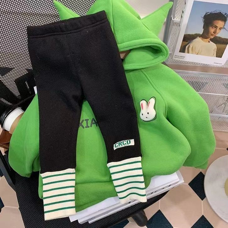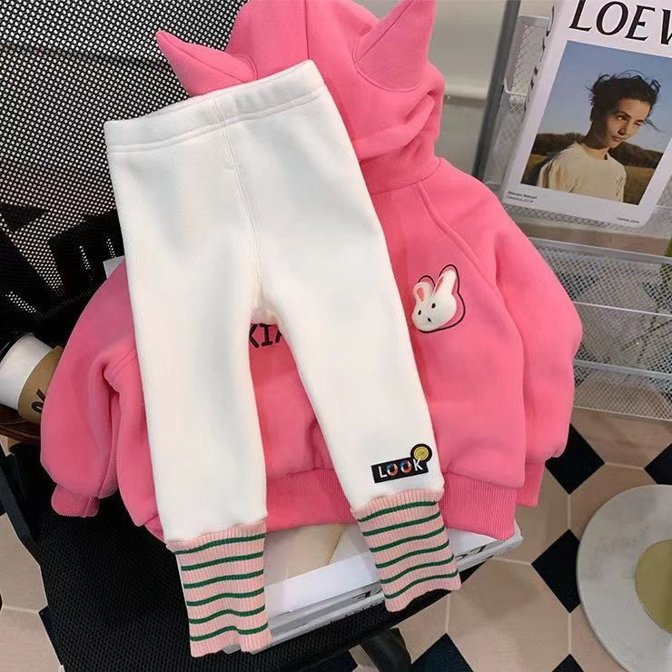 소녀 후드 기모 땀 세트 가을 및 겨울 새로운 도착 여성의 스타일리시 따뜻한 재킷 레깅스 2 피스 세트